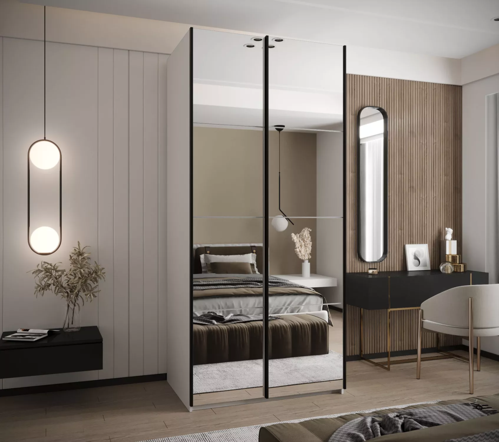 Šatní skříň SAMARA 2 – 110 představuje spojení elegance a funkcionality. Nabízí dostatek úložného prostoru v podobě policového systému a 2 šatních tyčí.