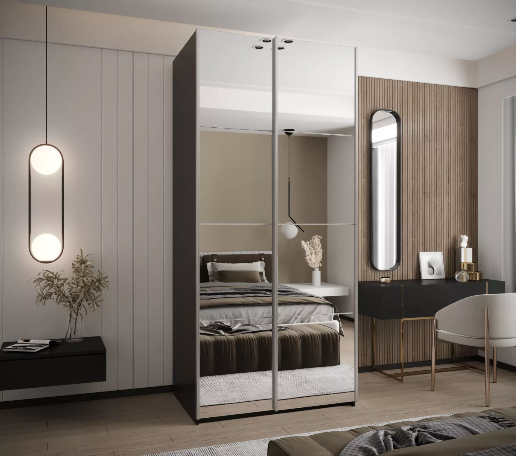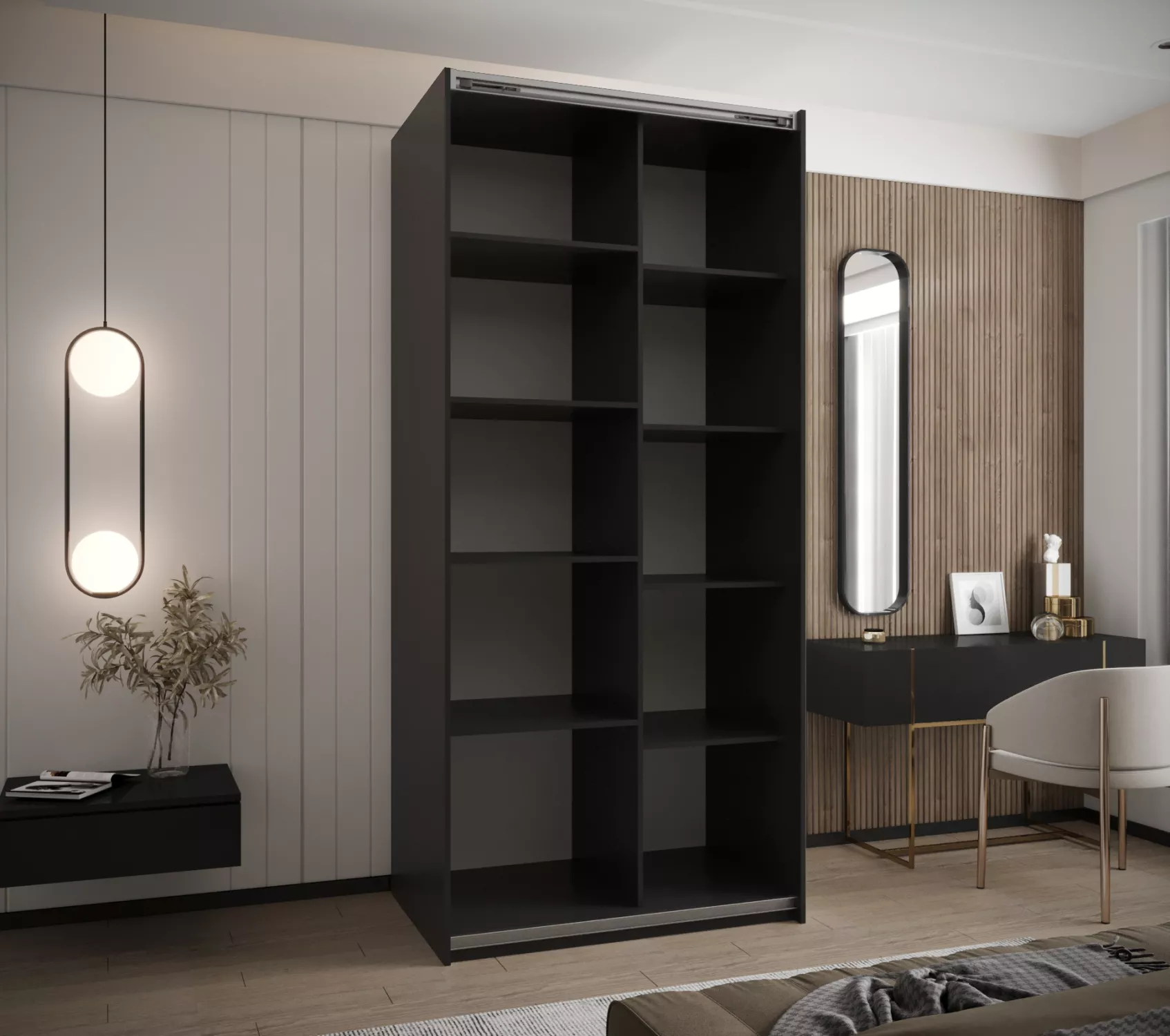 Šatní skříň SAMARA 2 – 110 představuje spojení elegance a funkcionality. Nabízí dostatek úložného prostoru v podobě policového systému a 2 šatních tyčí.