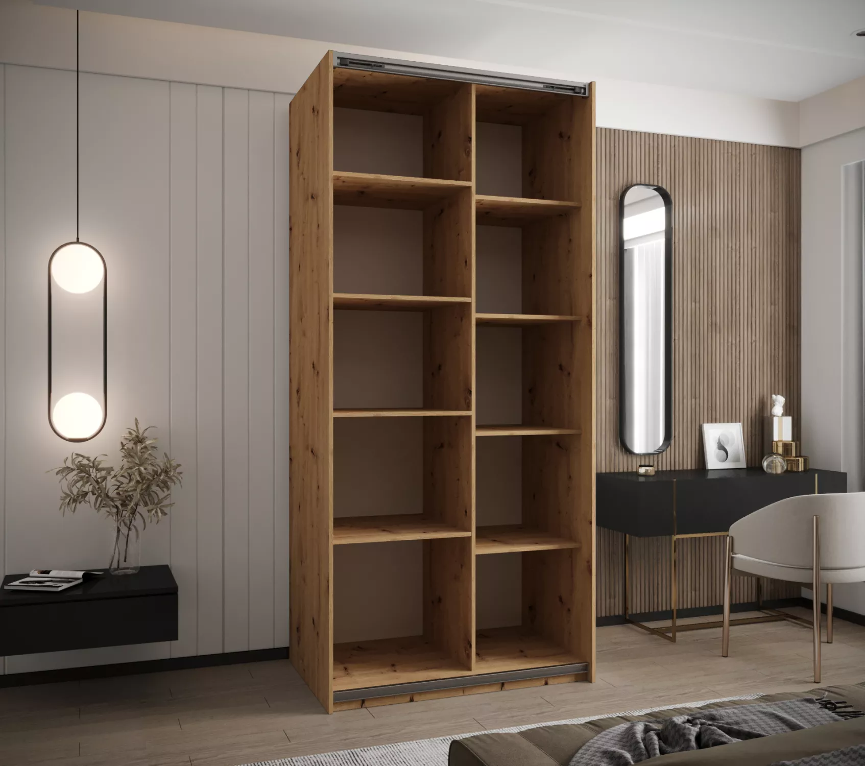 Šatní skříň SAMARA 2 – 110 představuje spojení elegance a funkcionality. Nabízí dostatek úložného prostoru v podobě policového systému a 2 šatních tyčí.