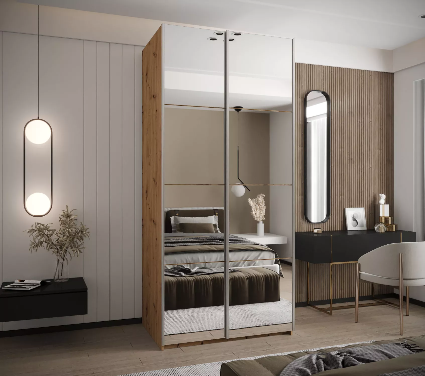 Šatní skříň SAMARA 2 – 120 představuje spojení elegance a funkcionality. Nabízí dostatek úložného prostoru v podobě policového systému a 2 šatních tyčí.