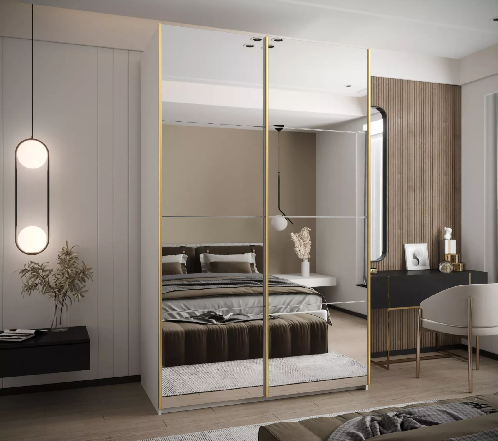 Dvoudveřová skříň SAMARA 2 - 150 cm, bílá / zlatá