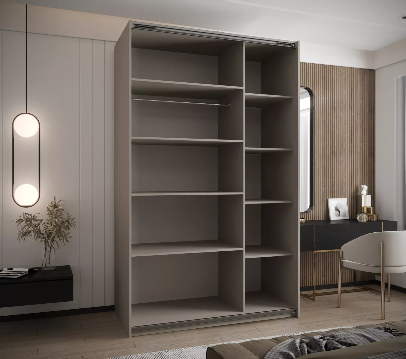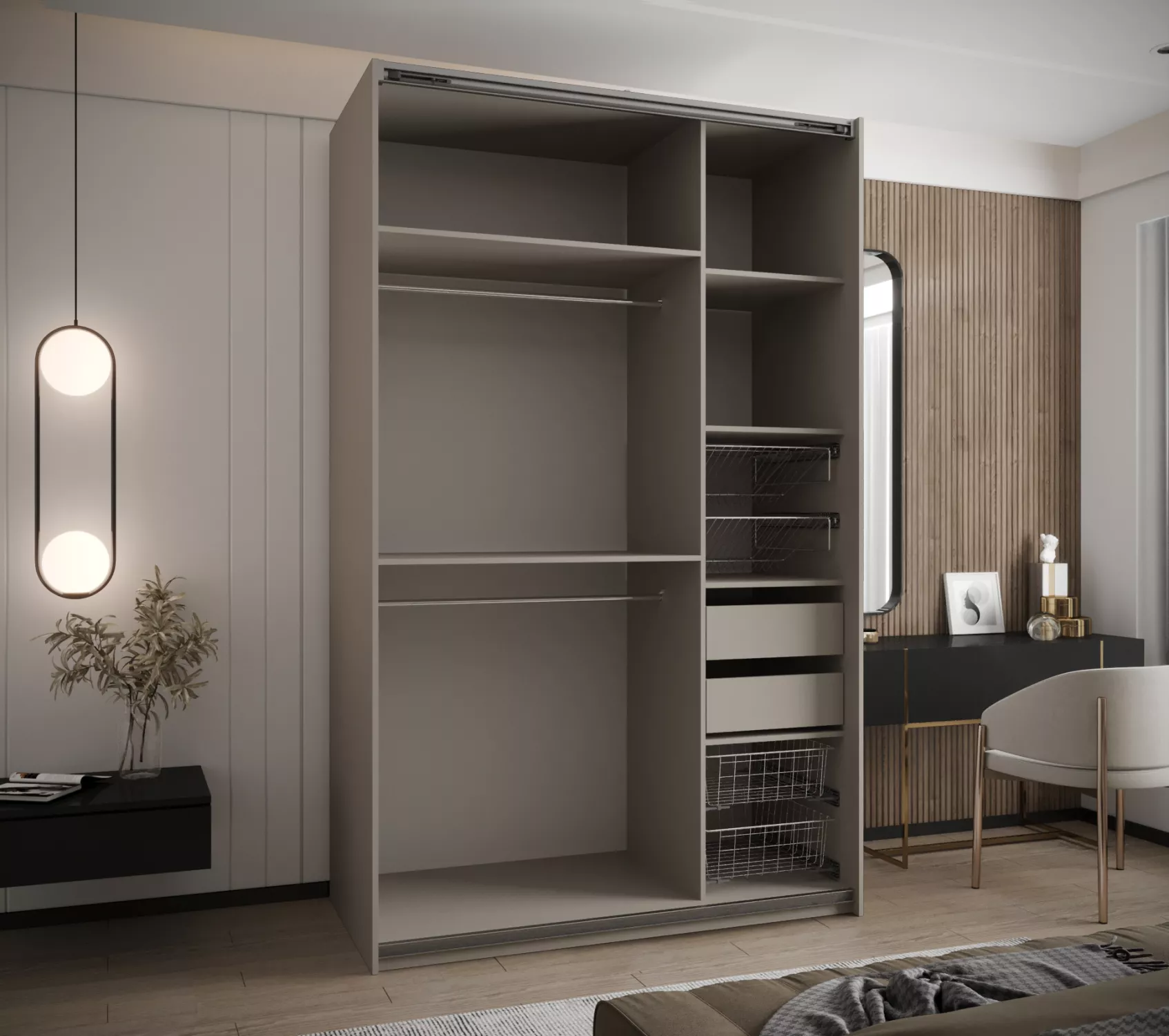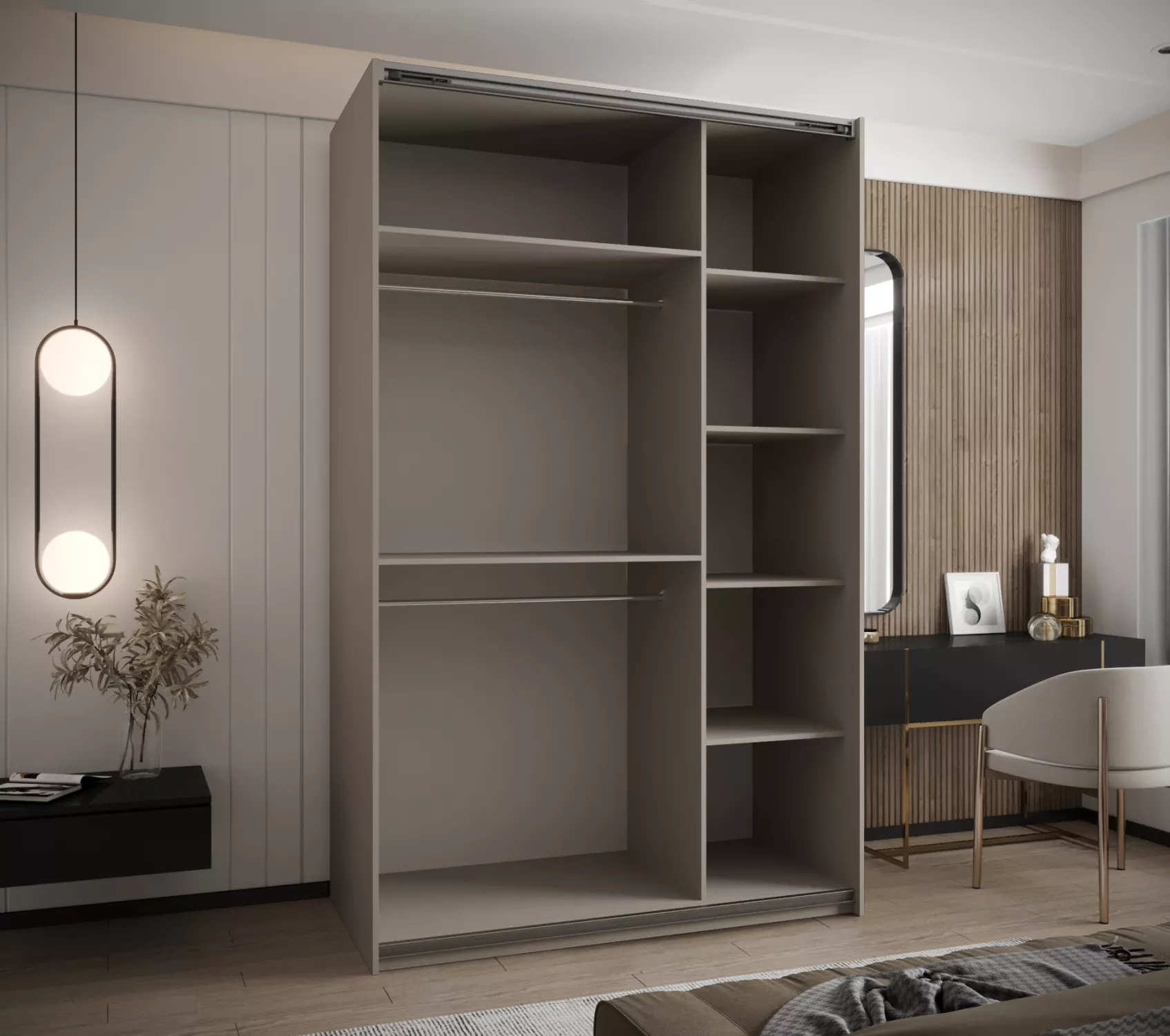 Šatní skříň SAMARA 2 – 150 představuje spojení elegance a funkcionality. Nabízí dostatek úložného prostoru v podobě policového systému a 2 šatních tyčí.