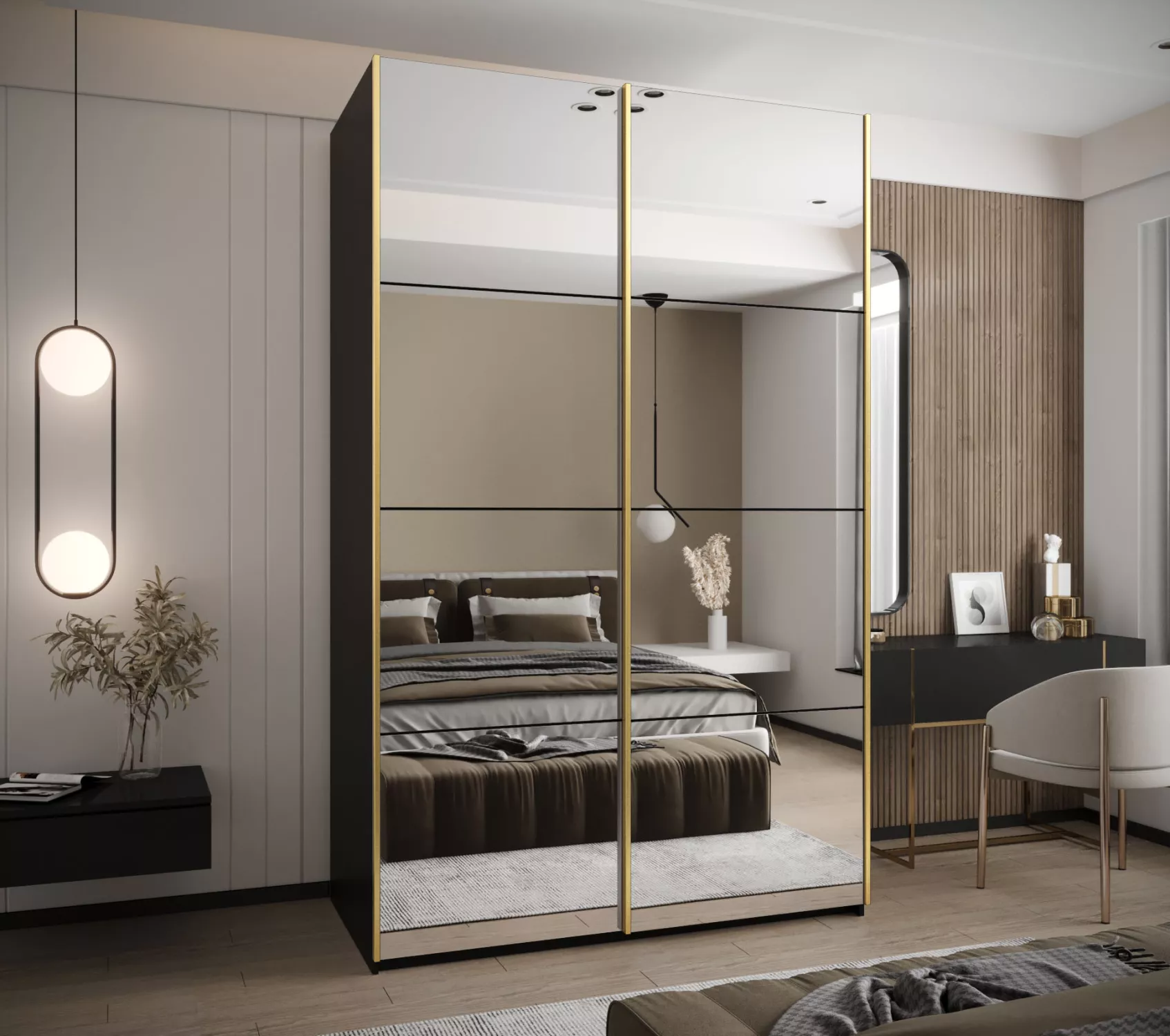 Dvoudveřová skříň SAMARA 2 - 160 cm, černá / zlatá