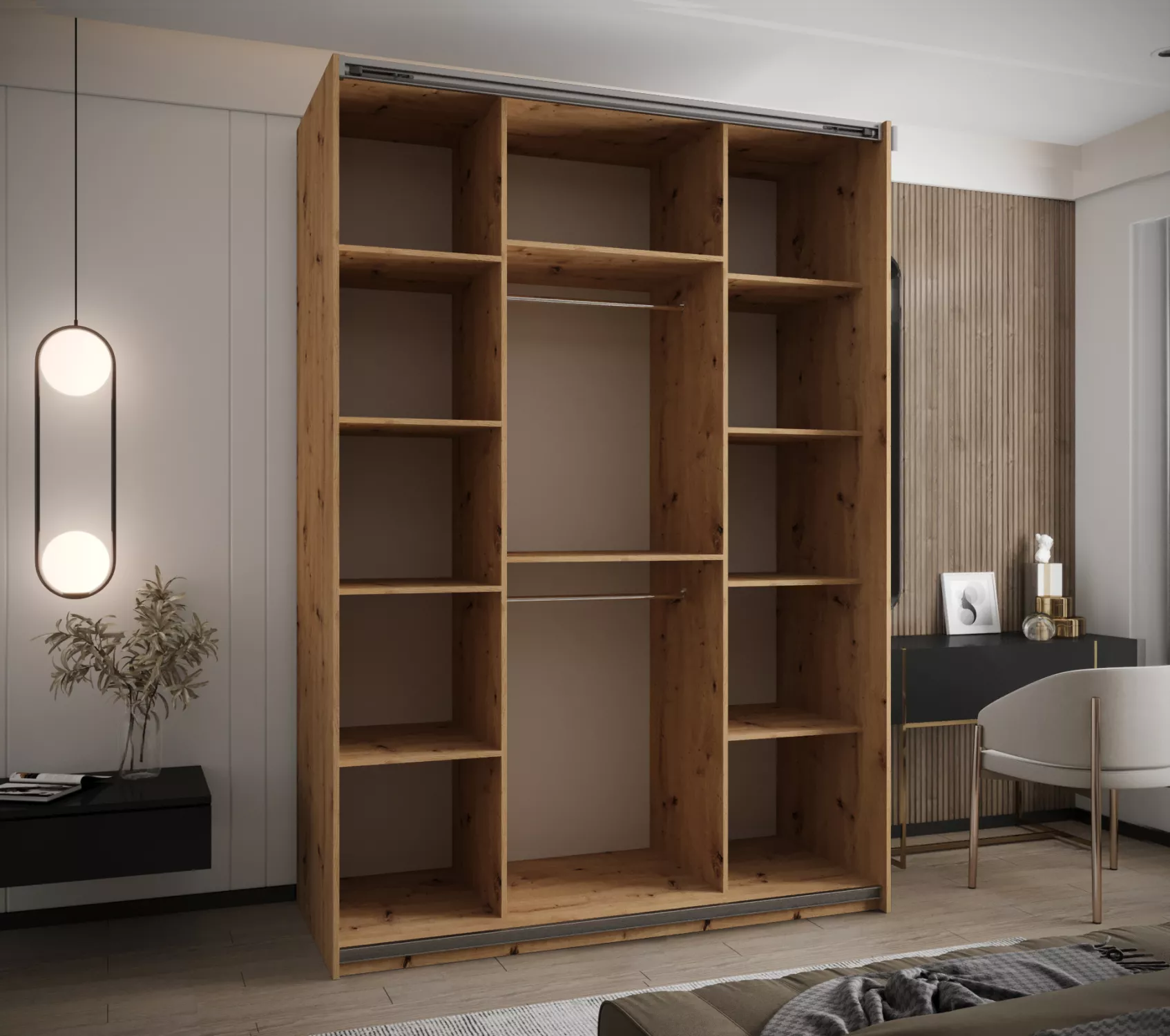 Dvoudveřová skříň SAMARA 2 představuje spojení elegance a funkcionality. Nabízí dostatek úložného prostoru v podobě policového systému a 2 šatních tyčí.