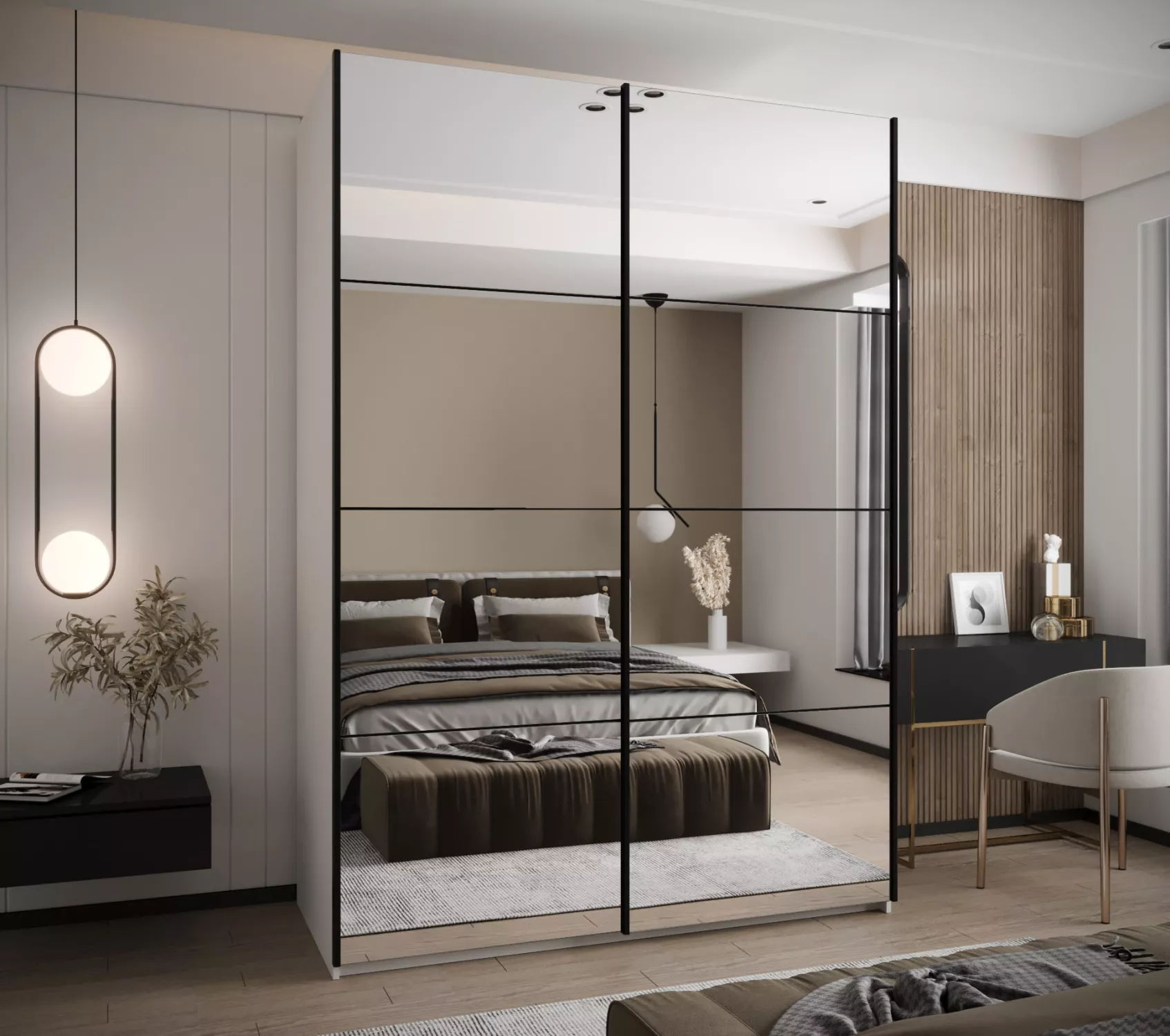 Dvoudveřová skříň SAMARA 2 - 180 cm, bílá / černá / černá