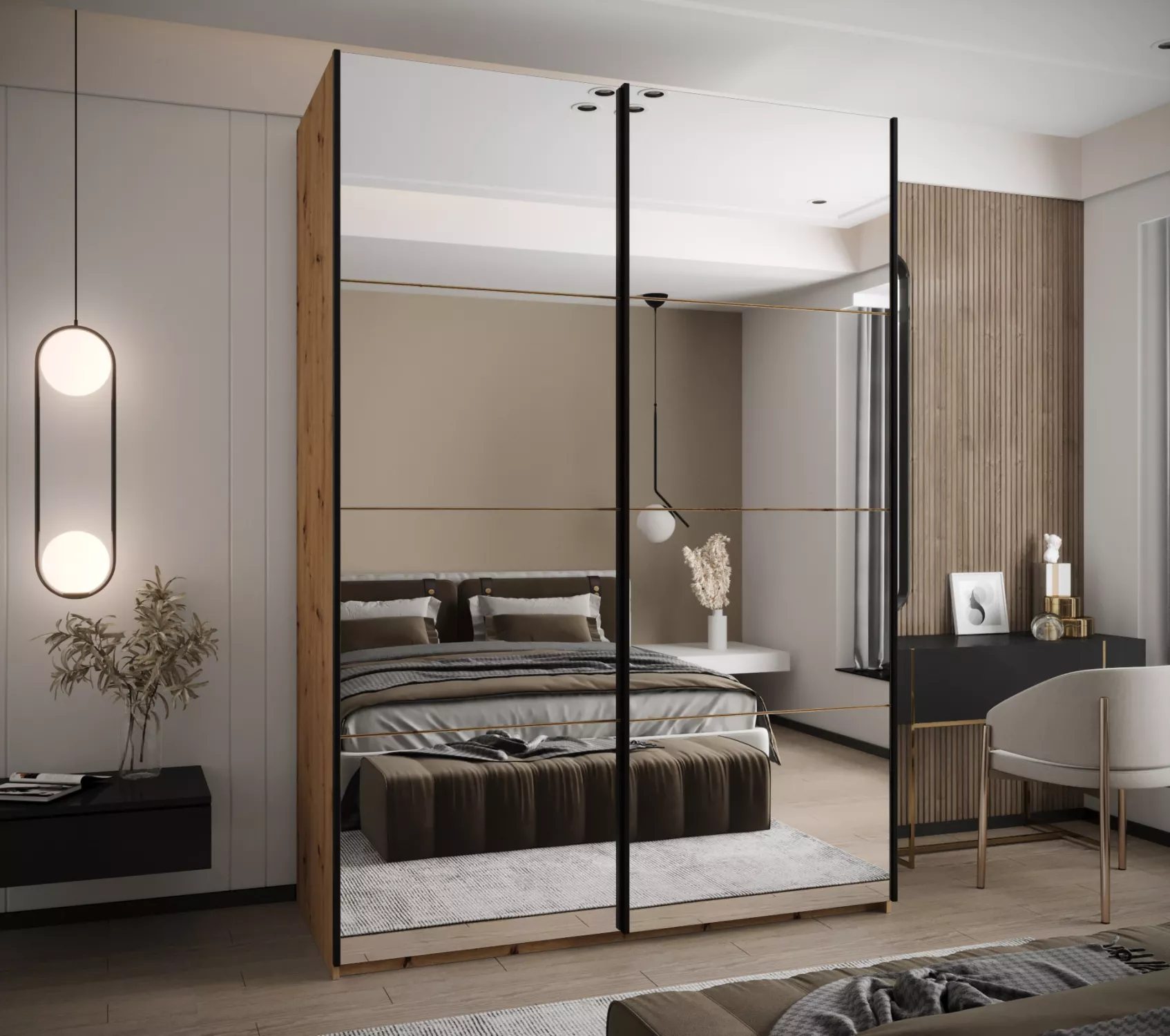 Dvoudveřová skříň SAMARA 2 představuje spojení elegance a funkcionality. Nabízí dostatek úložného prostoru v podobě policového systému a 2 šatních tyčí.