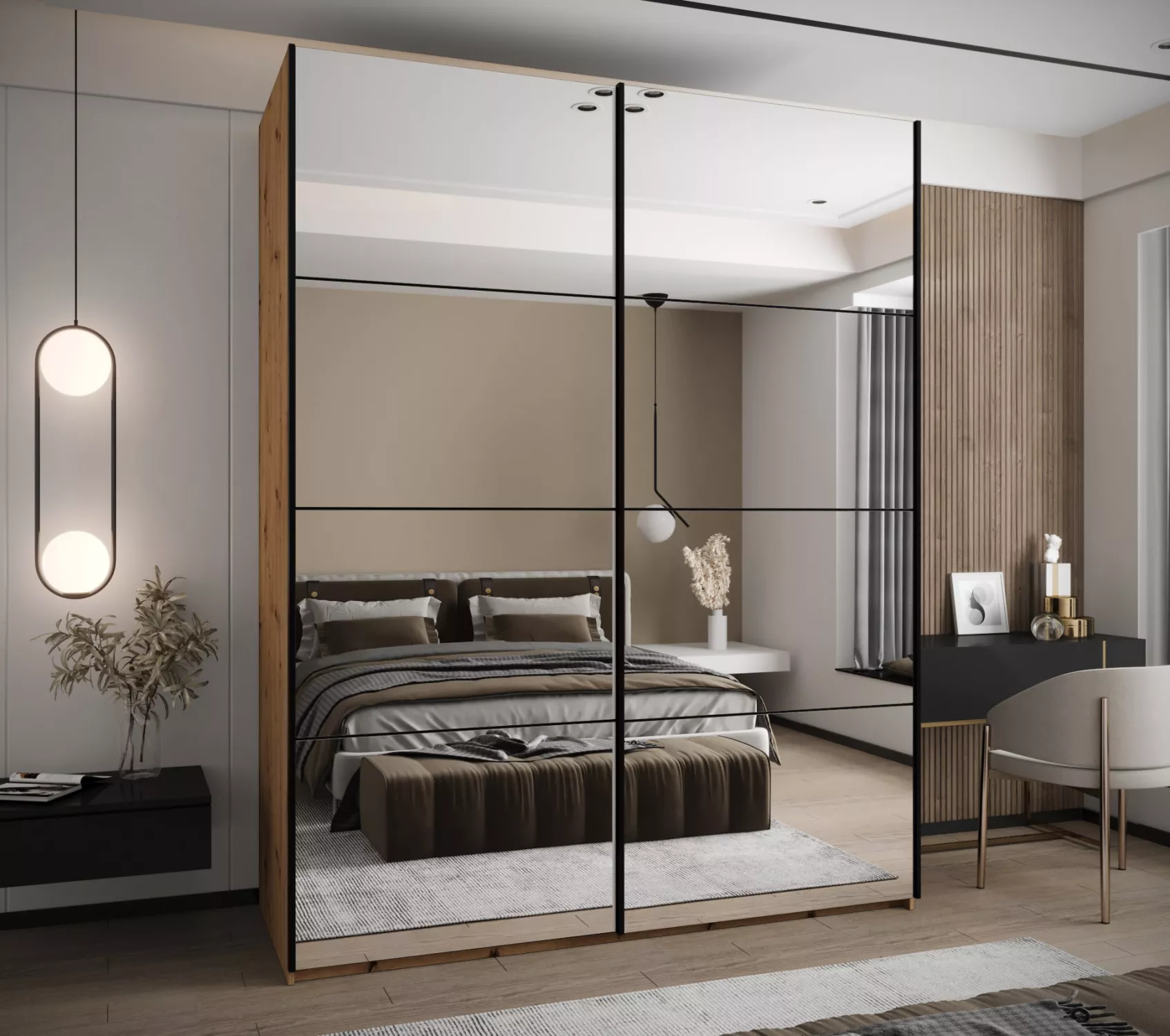 Dvoudveřová skříň SAMARA 2 představuje spojení elegance a funkcionality. Nabízí dostatek úložného prostoru v podobě policového systému a 2 šatních tyčí.