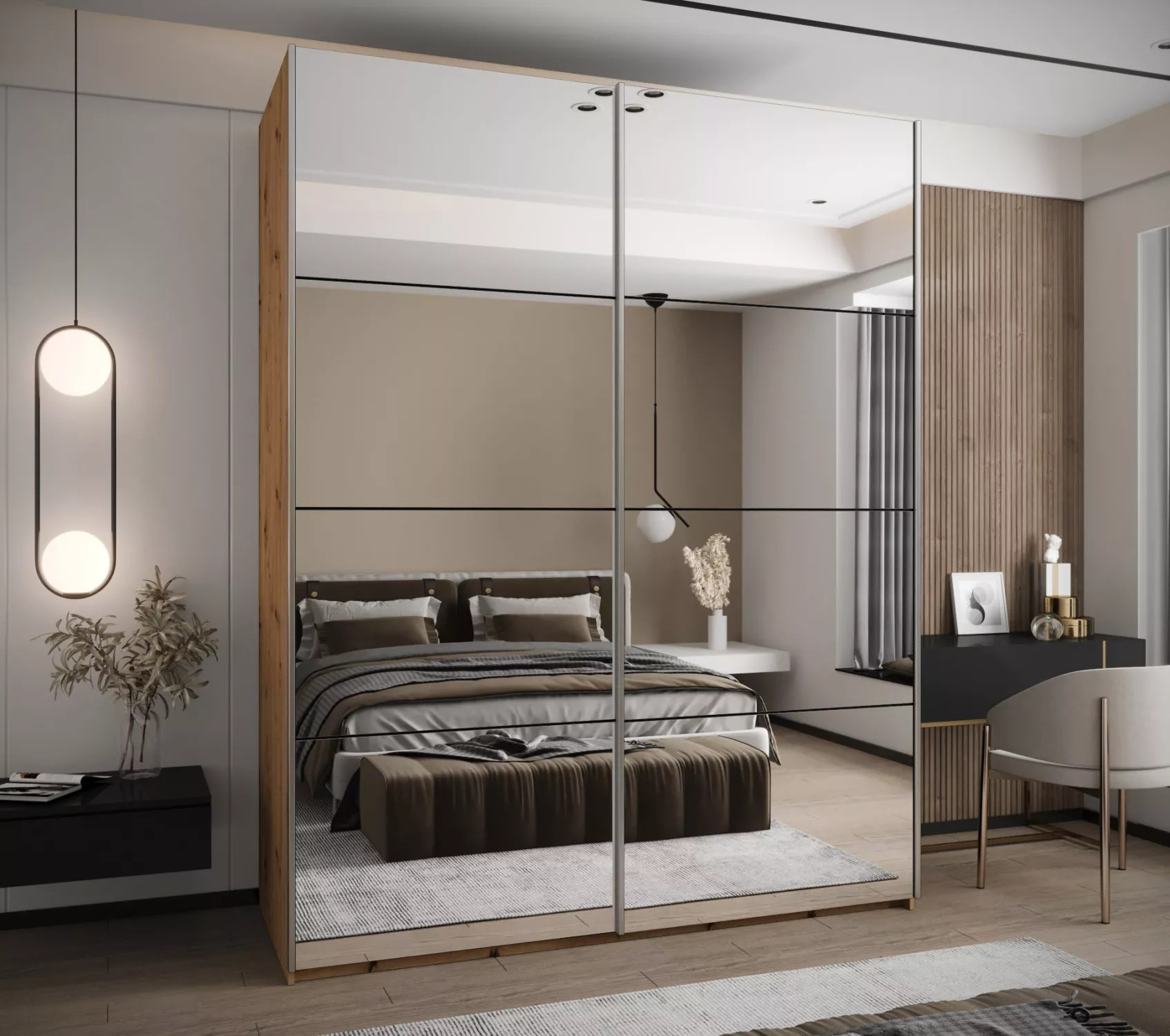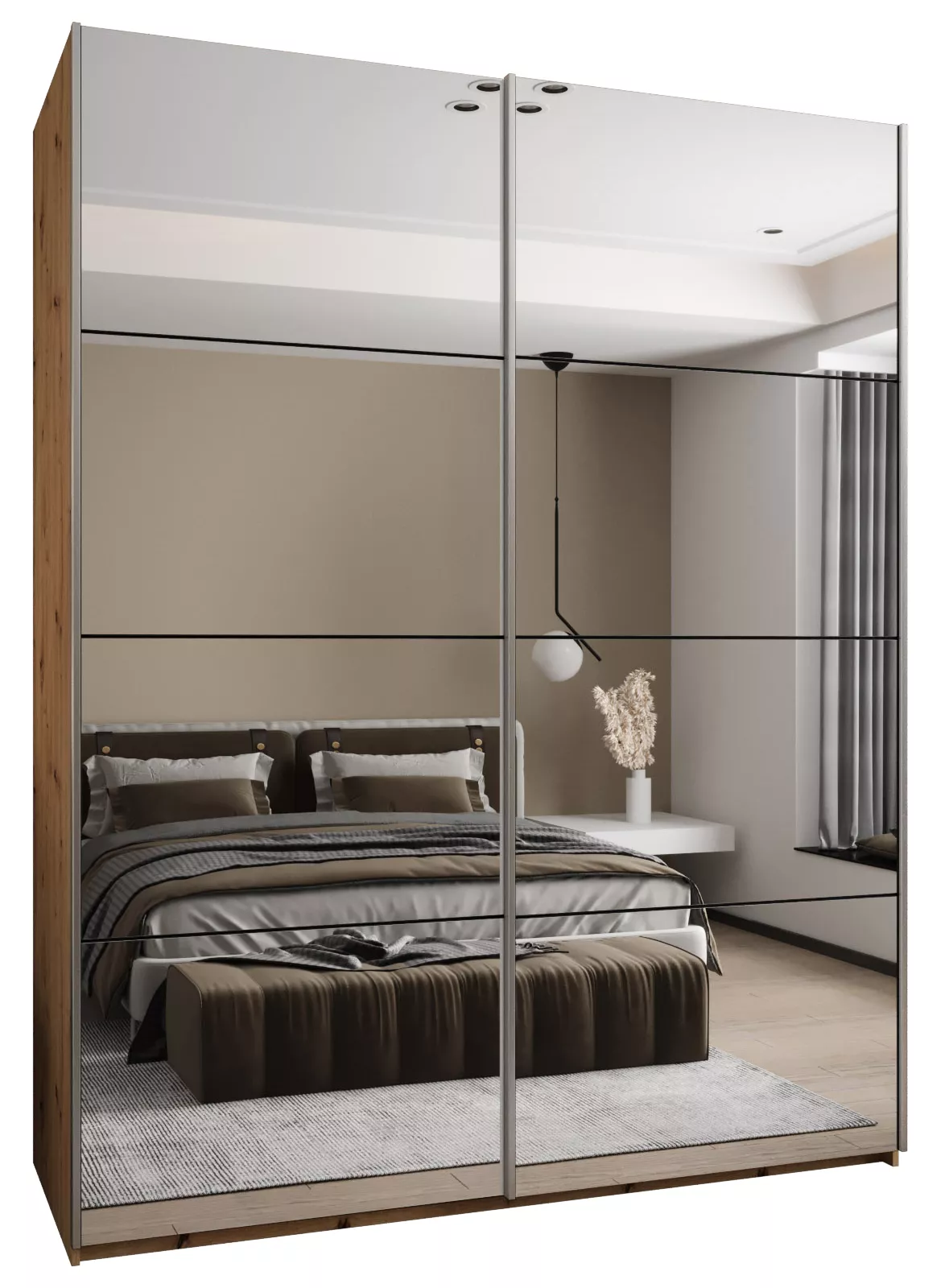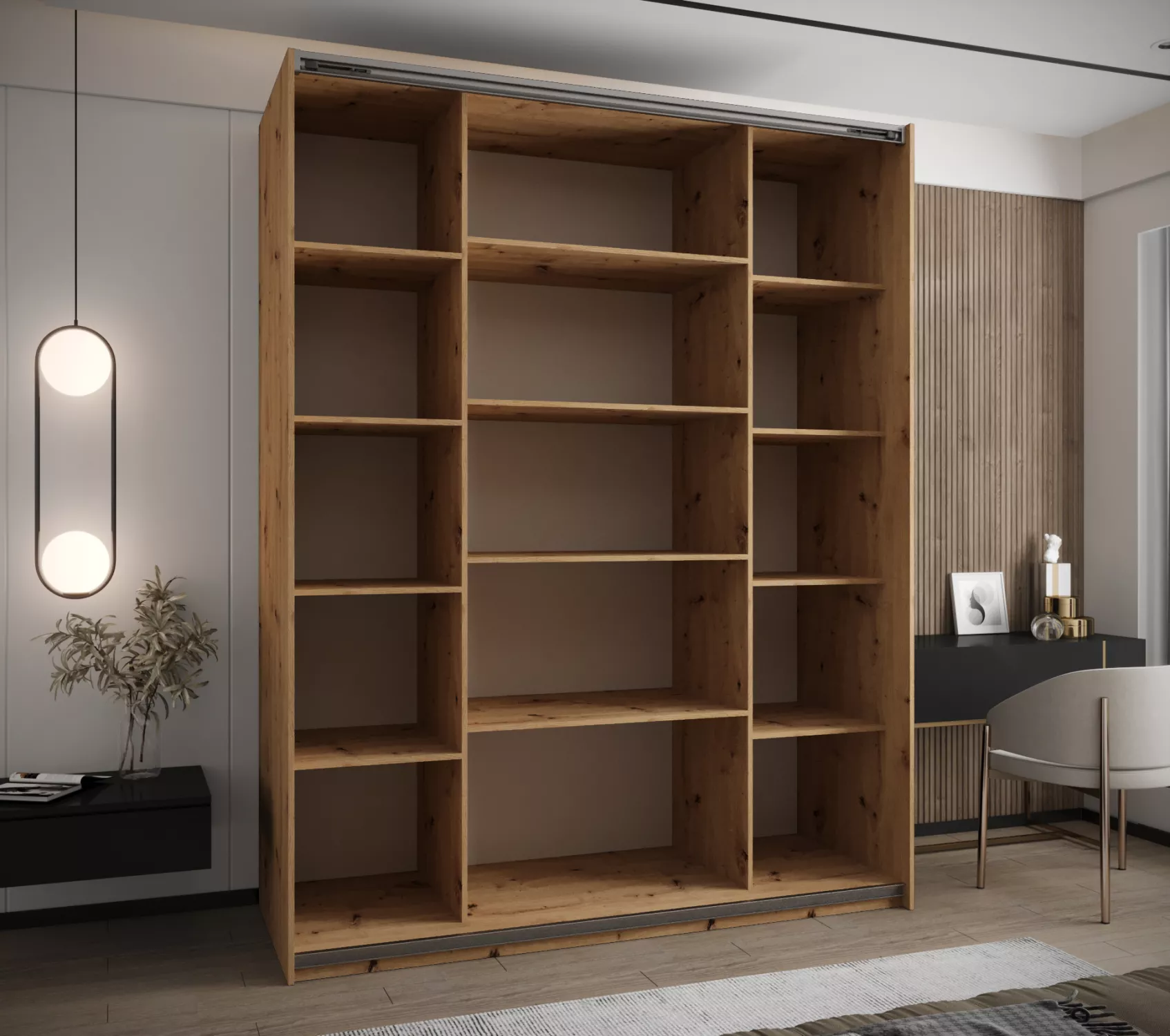 Dvoudveřová skříň SAMARA 2 představuje spojení elegance a funkcionality. Nabízí dostatek úložného prostoru v podobě policového systému a 2 šatních tyčí.