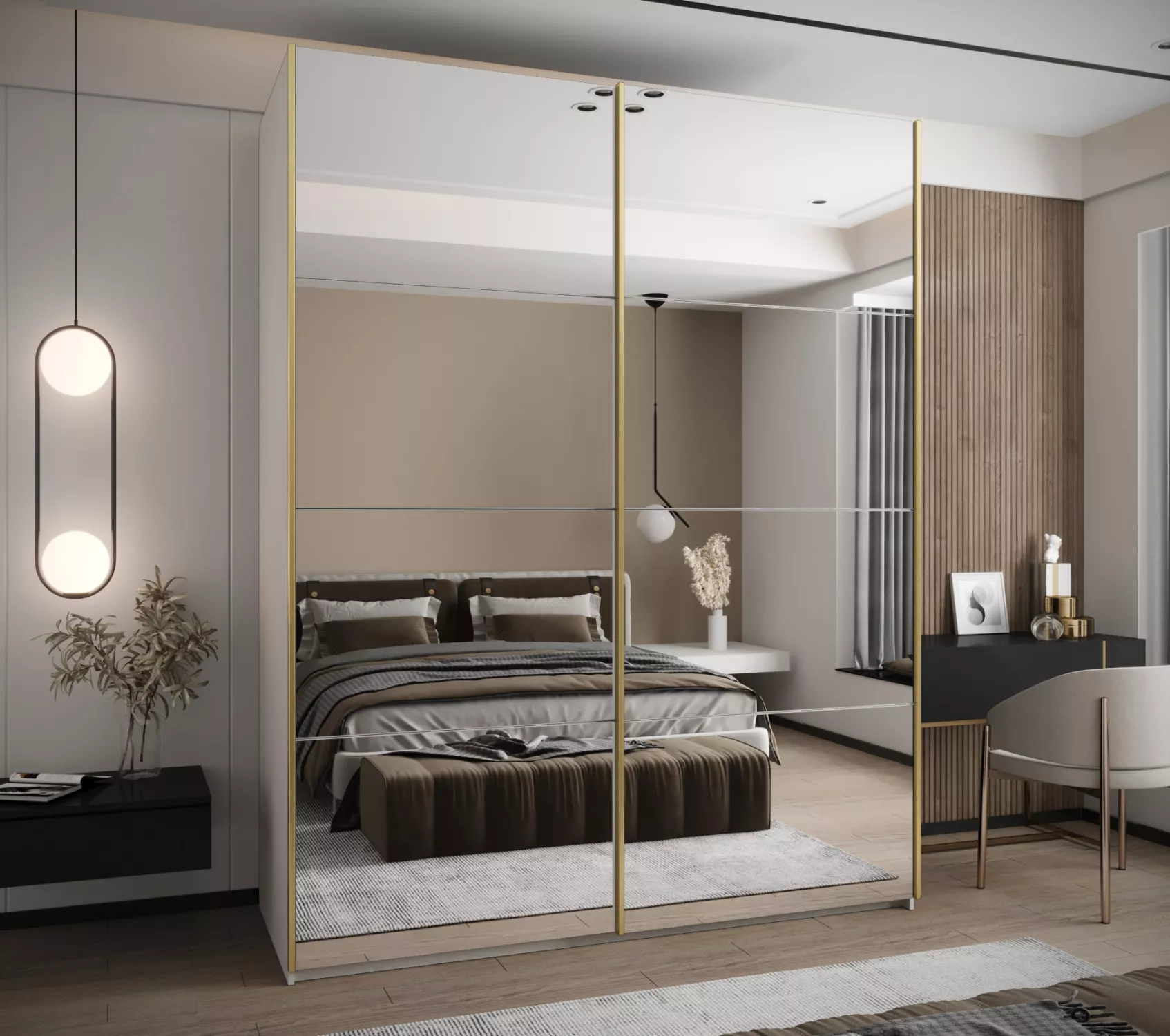 Dvoudveřová skříň SAMARA 2 - 200 cm, bílá / zlatá