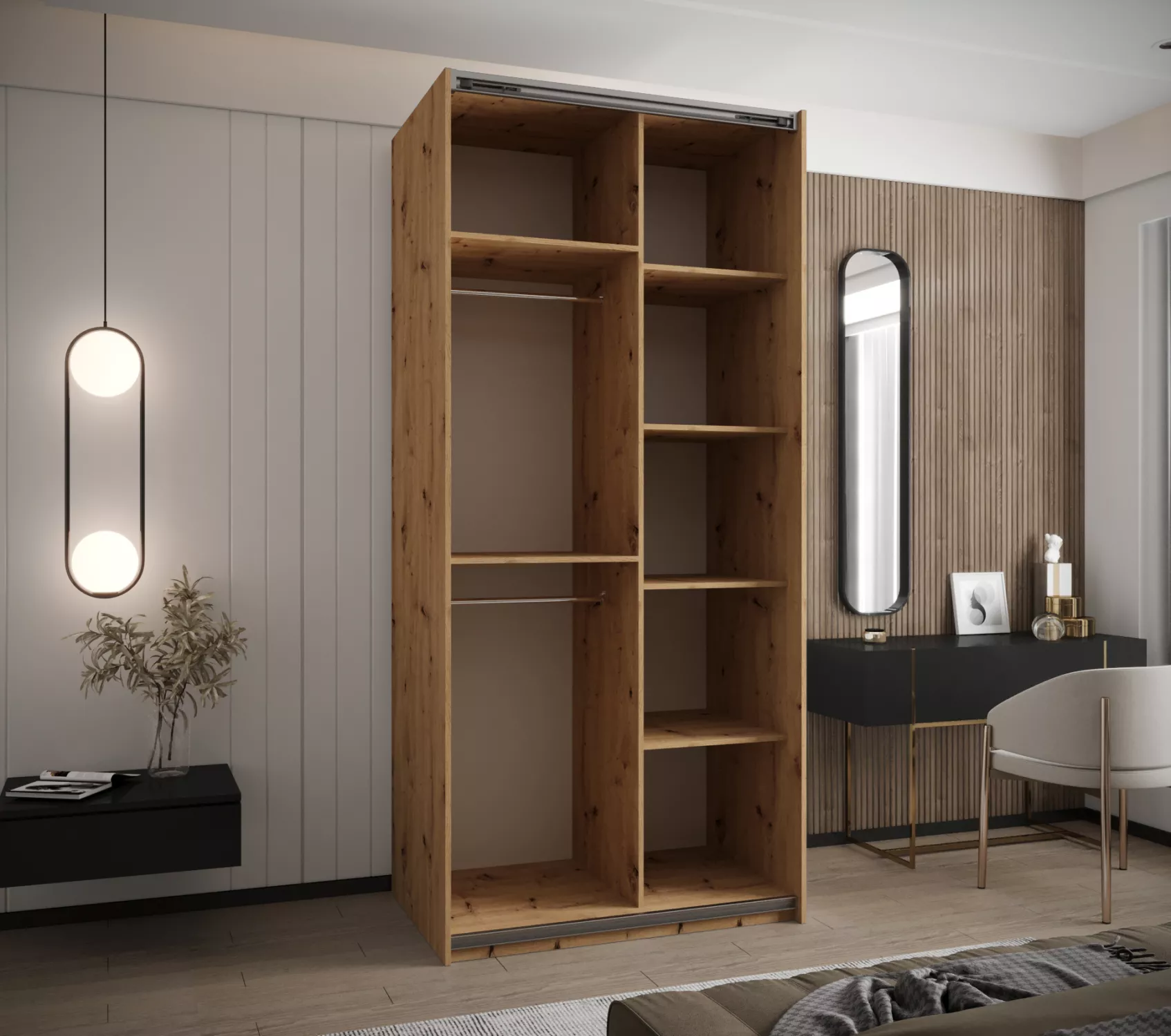 Dvoudveřová skříň SAMARA 3 - 100 představuje spojení elegance a funkcionality. Nabízí dostatek úložného prostoru v podobě policového systému a 2 šatních tyčí.