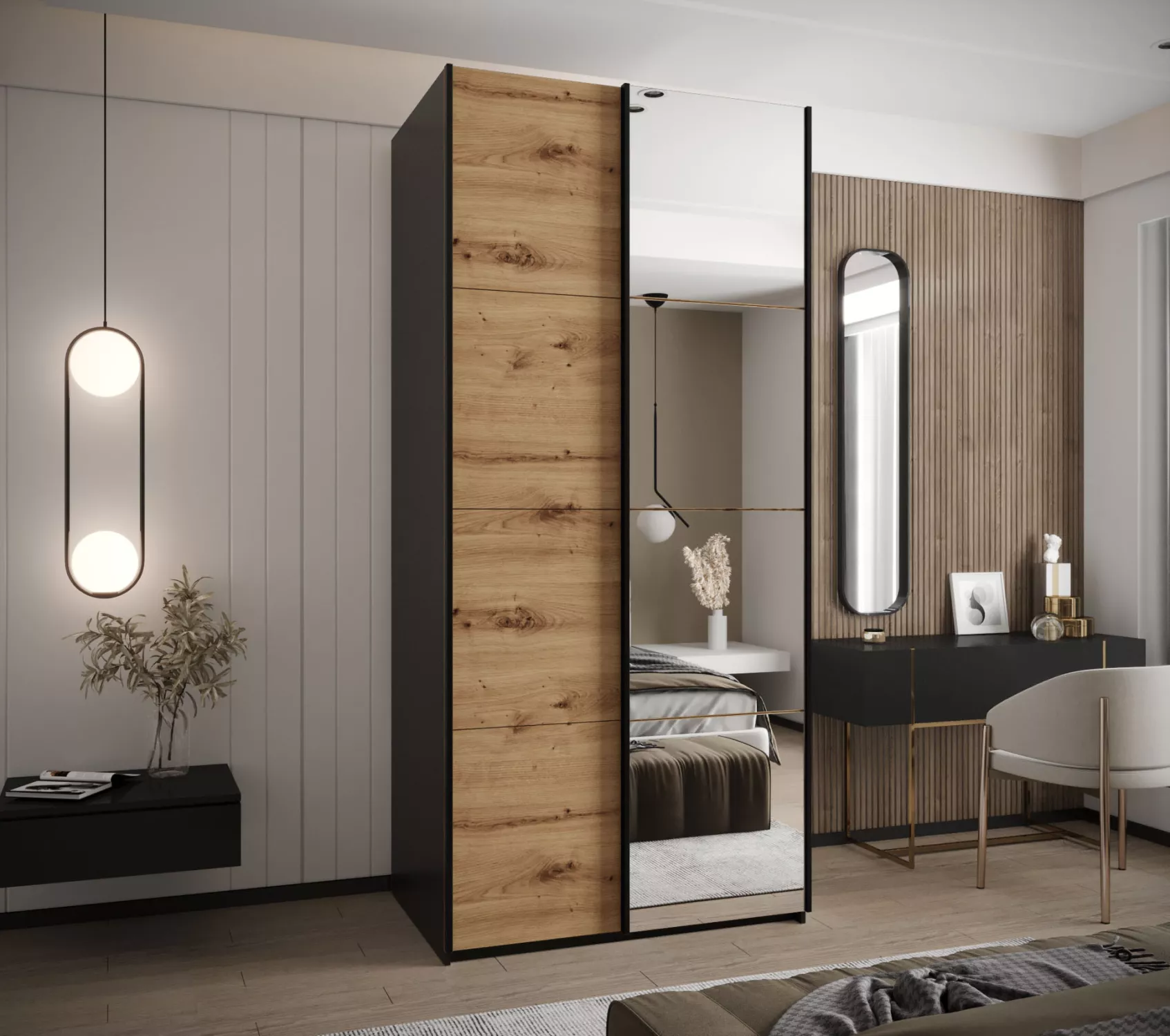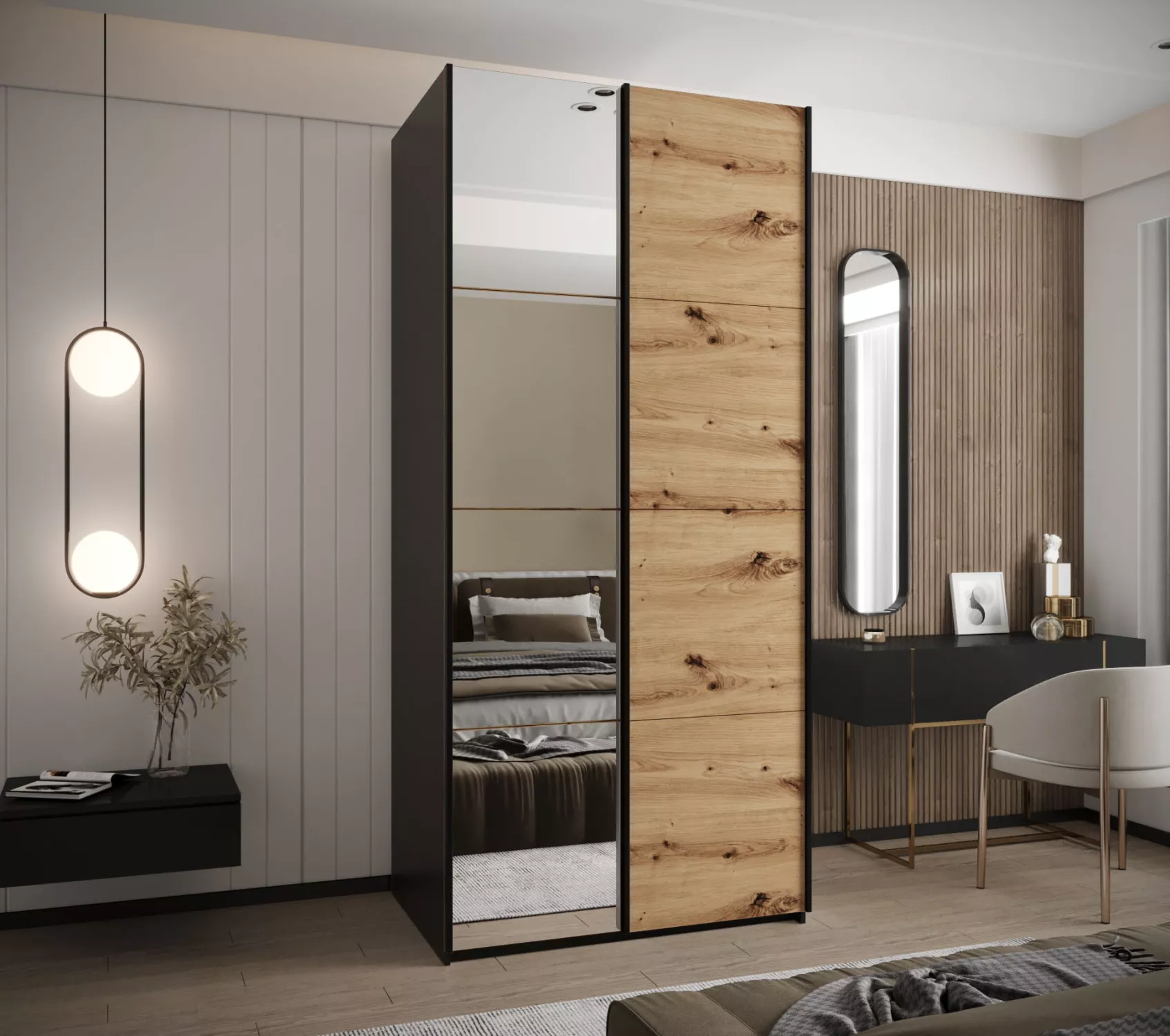 Dvoudveřová skříň SAMARA 3 - 110 cm, černá / dub artisan / černá