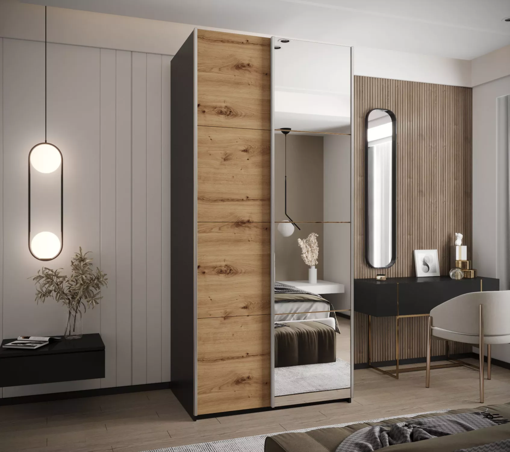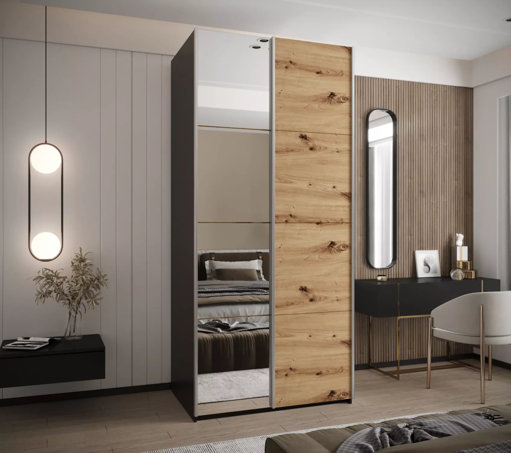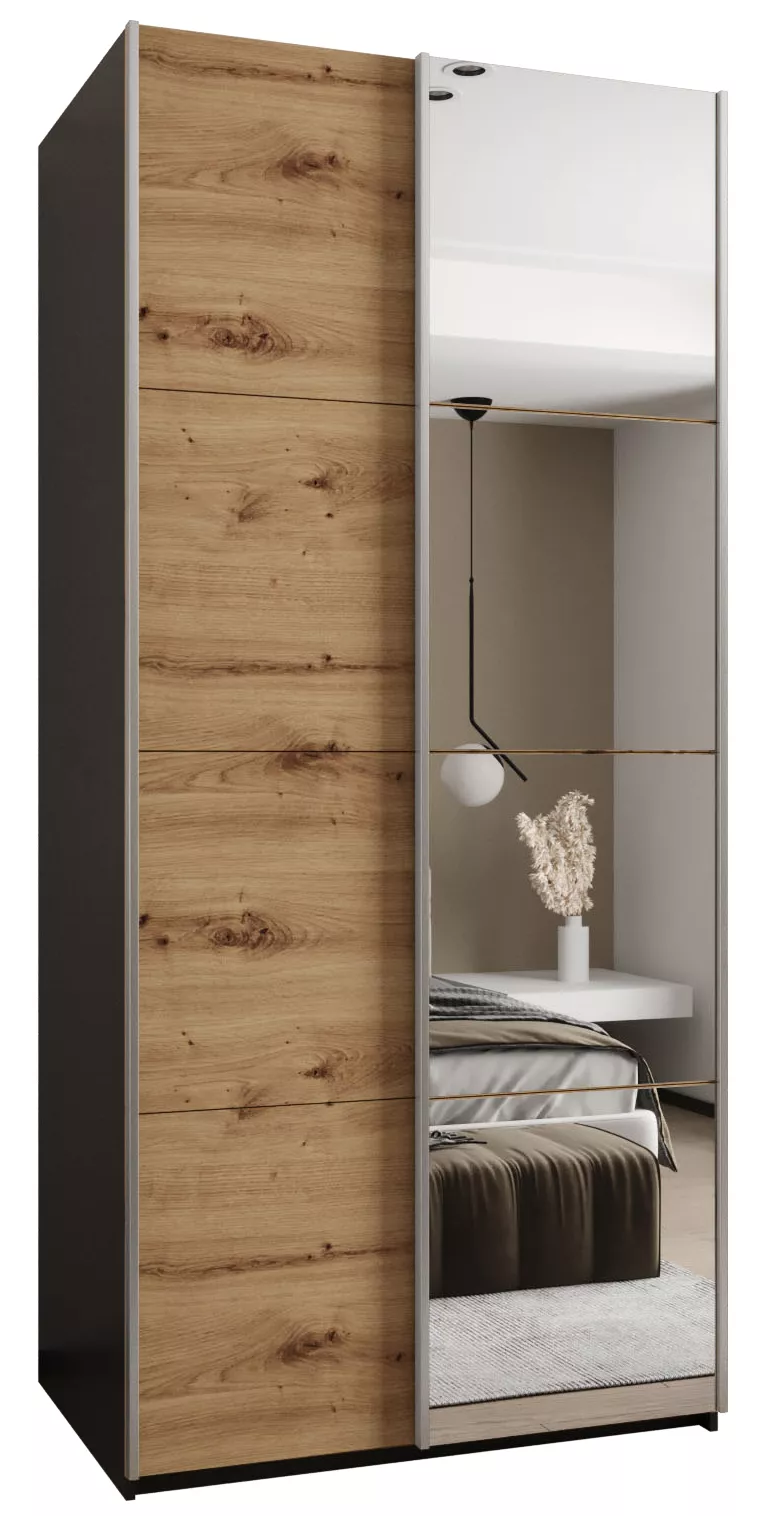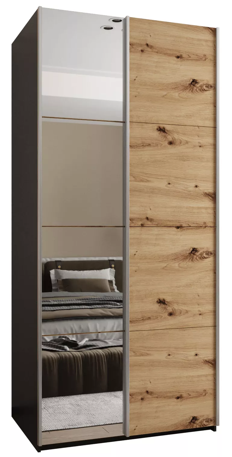 Dvoudveřová skříň SAMARA 3 - 110 cm, černá / dub artisan / stříbrná