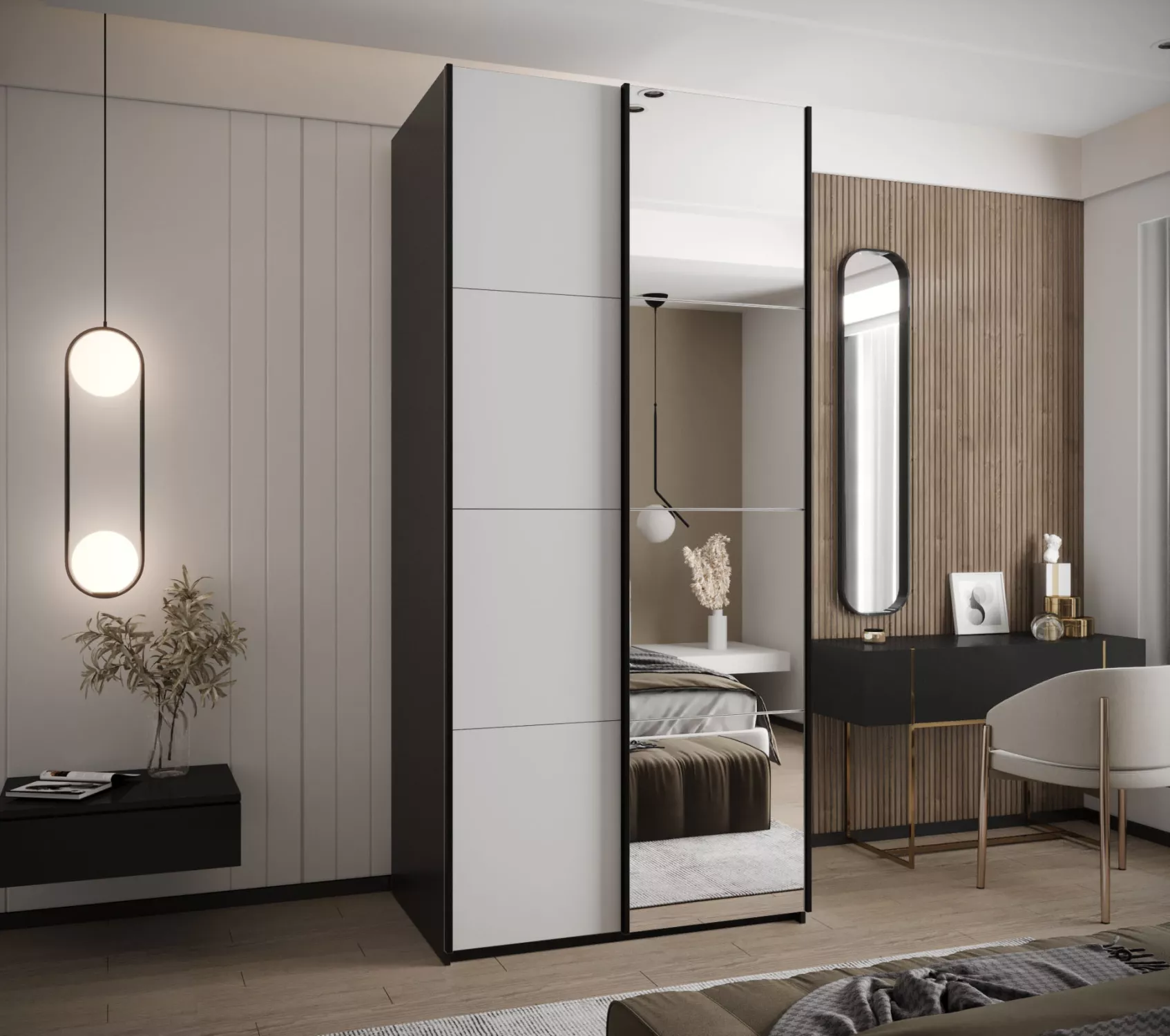 Dvoudveřová skříň SAMARA 3 - 110 cm, černá / bílá / černá