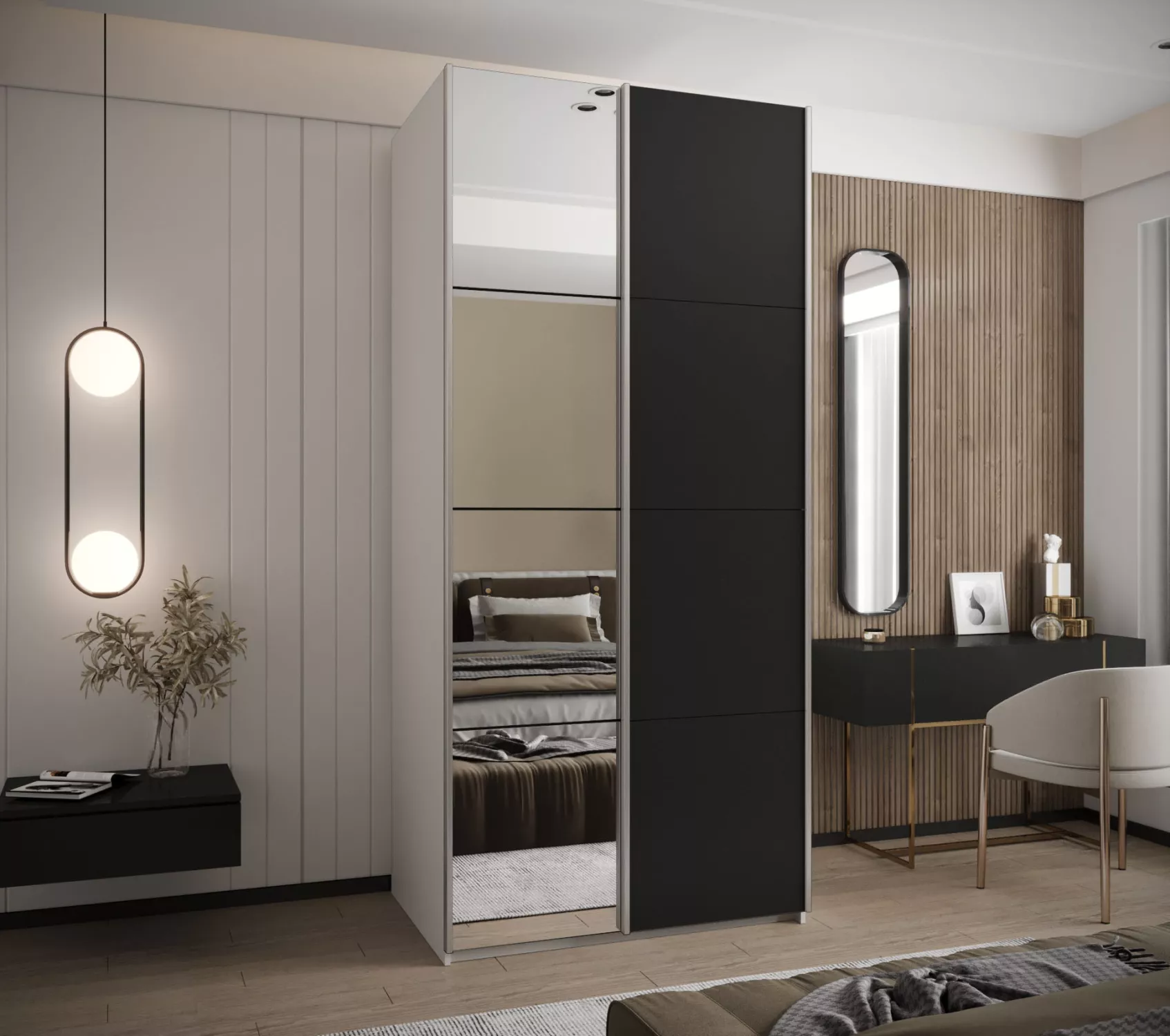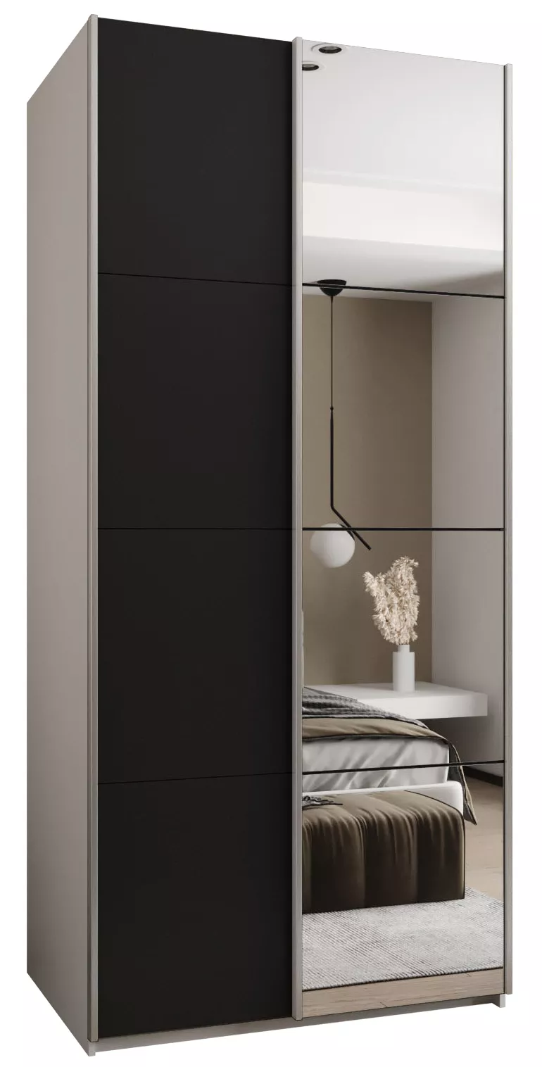 Dvoudveřová skříň SAMARA 3 - 120 cm, bílá / černá / stříbrná