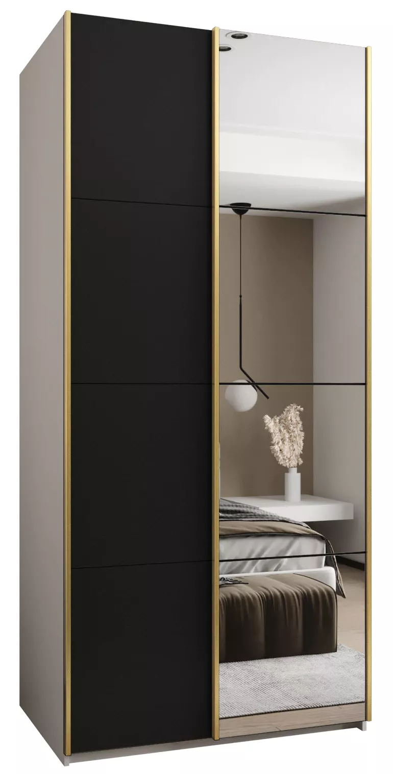 Dvoudveřová skříň SAMARA 3 - 120 cm, bílá / černá / zlatá