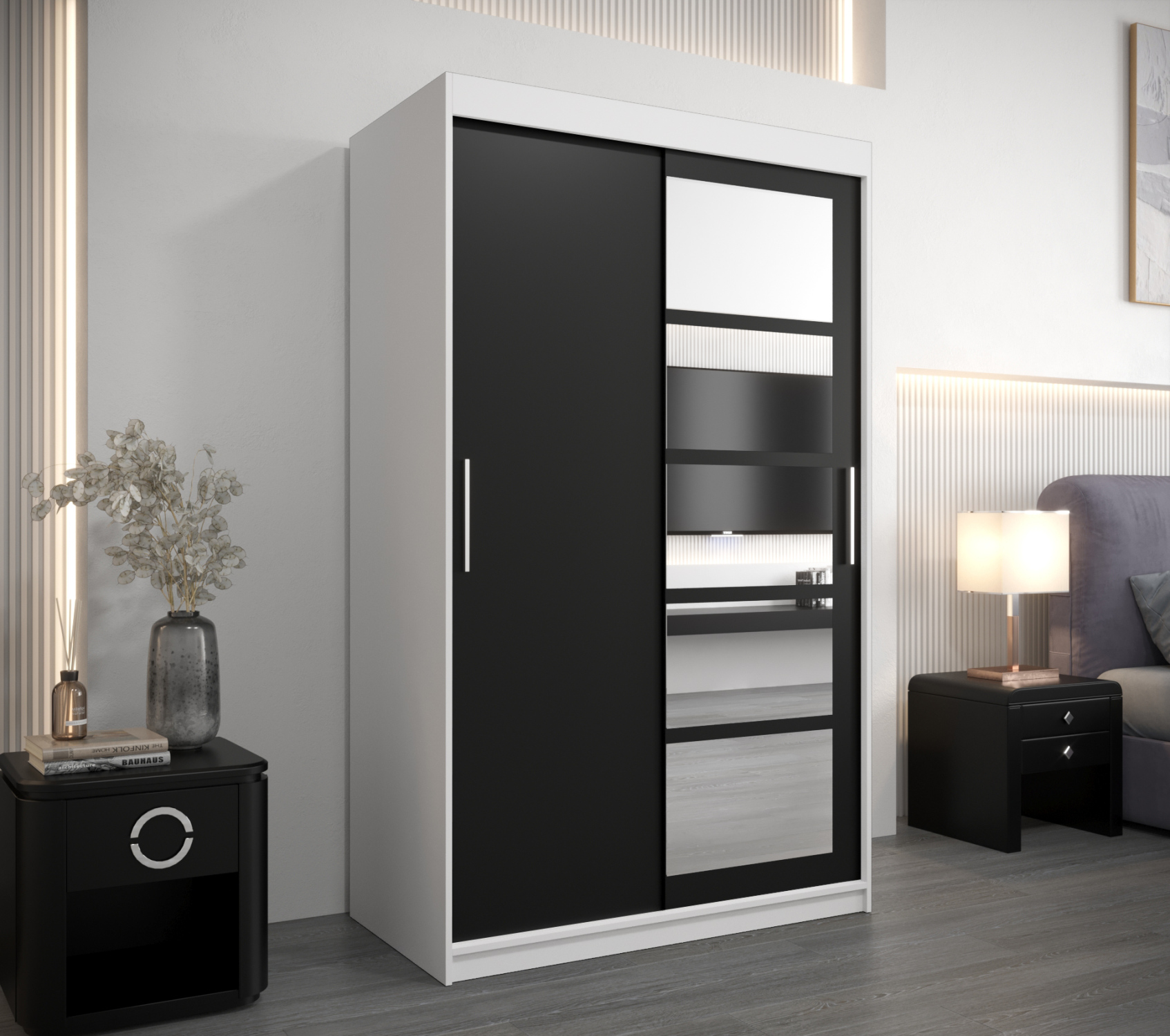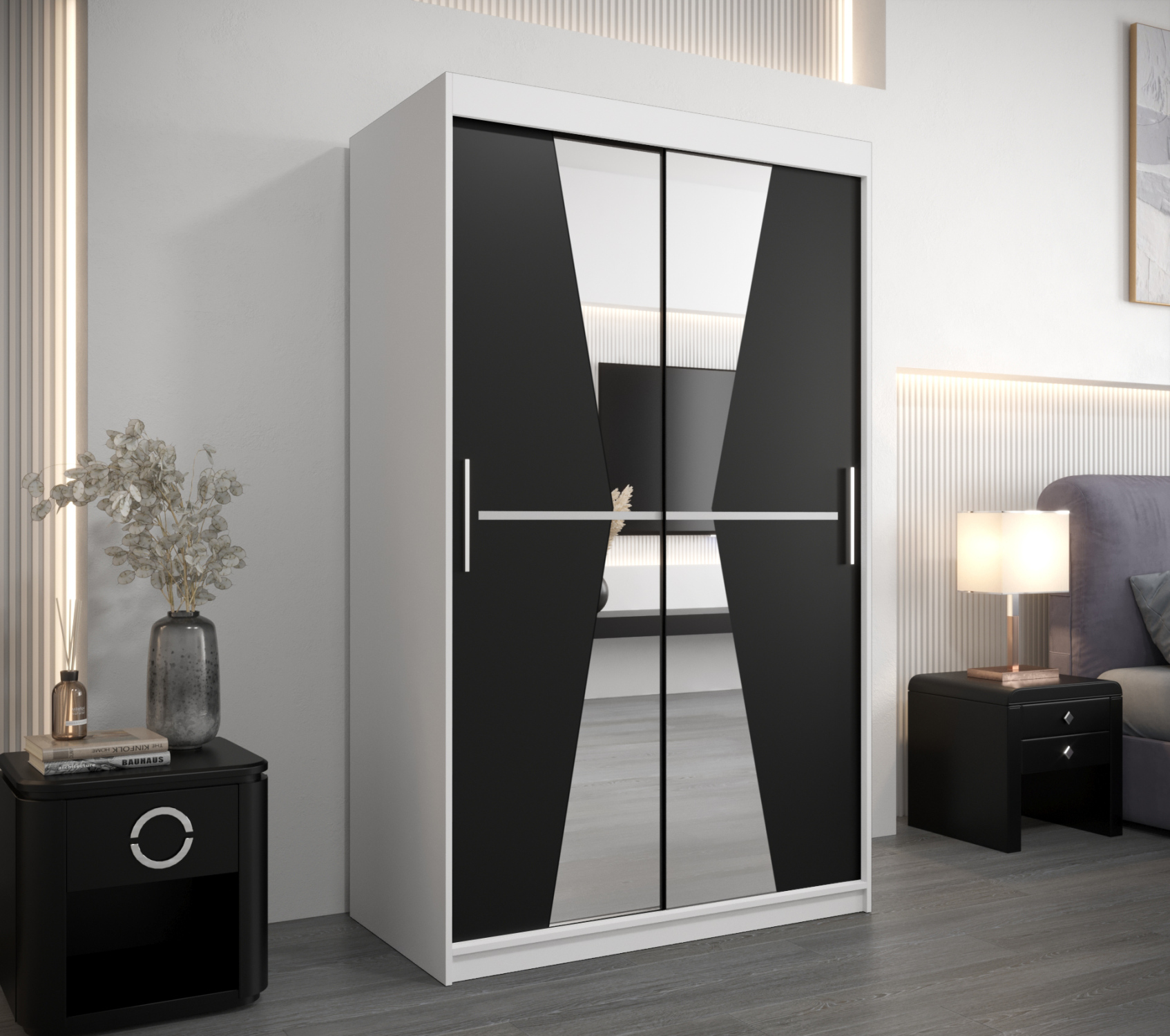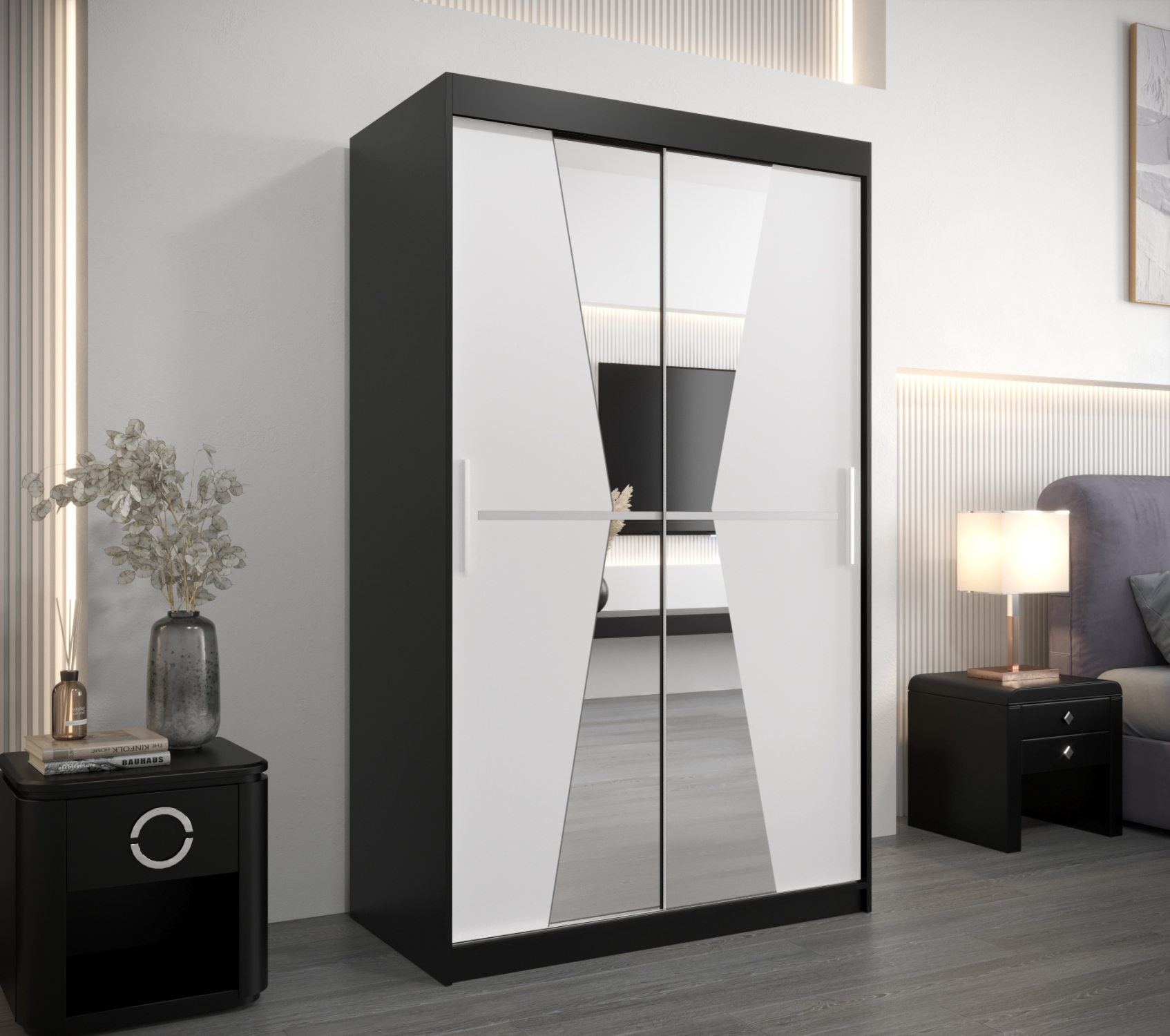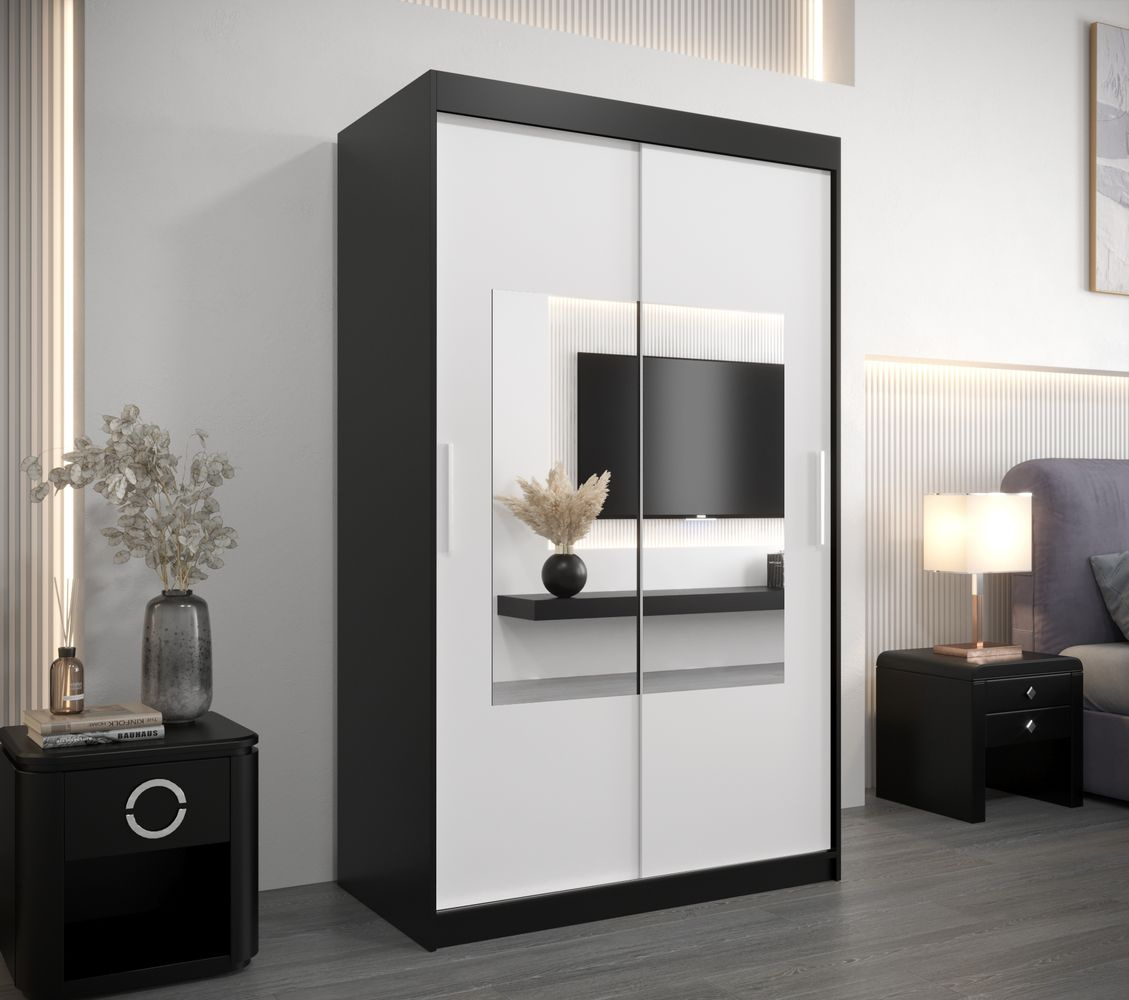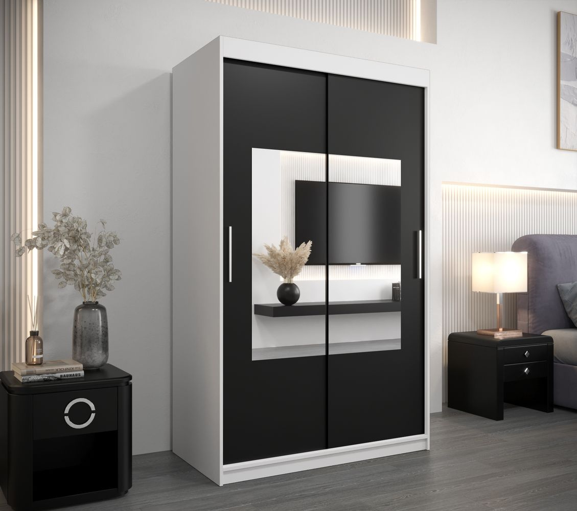 Dvoudveřová skříň SAMARA 3 - 120 cm, černá / bílá / černá