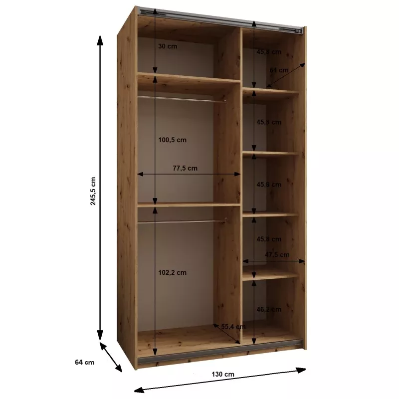 Dvoudveřová skříň SAMARA 3 - 130 představuje spojení elegance a funkcionality. Nabízí dostatek úložného prostoru v podobě policového systému a 2 šatních tyčí.