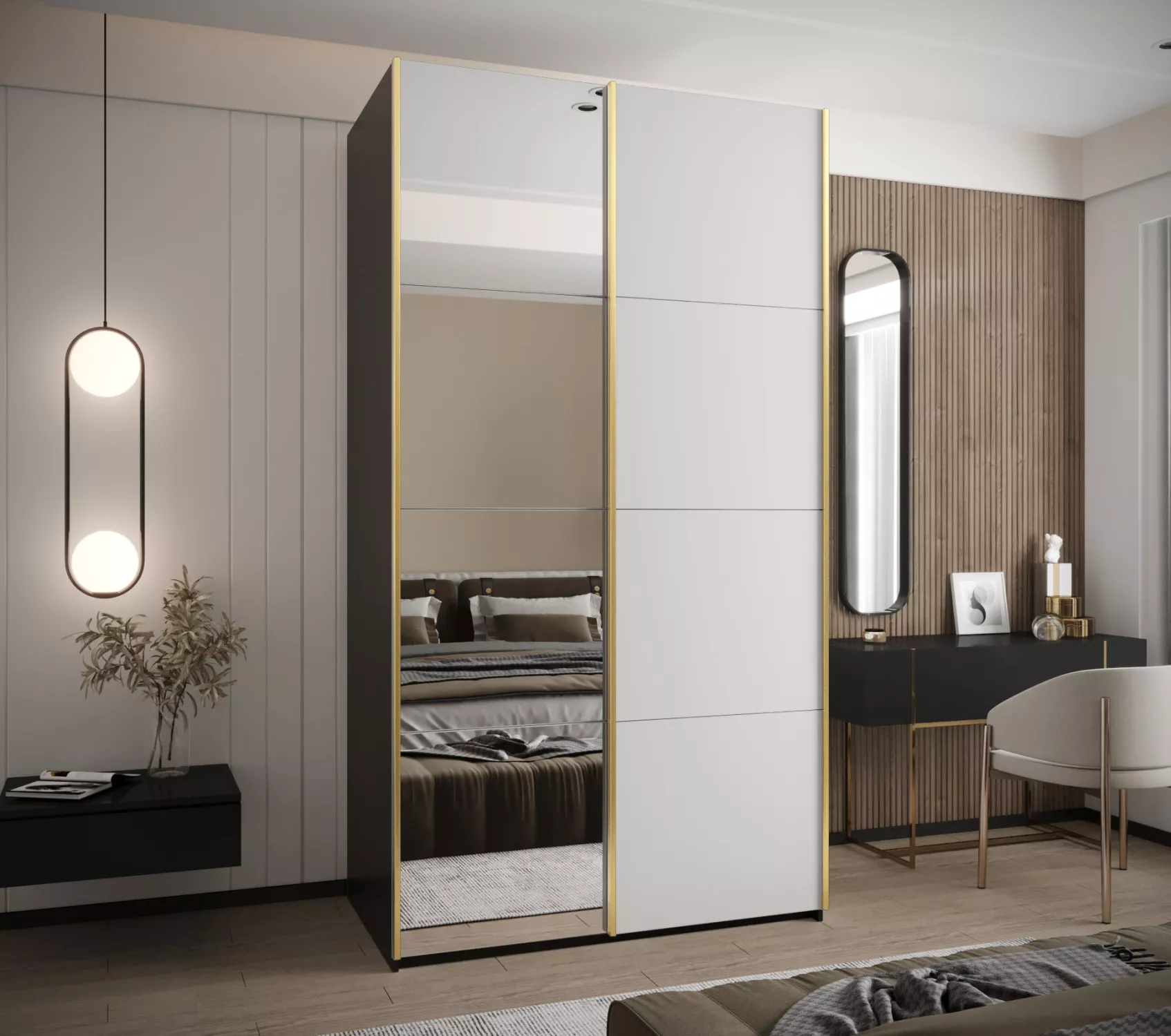 Dvoudveřová skříň SAMARA 3 - 130 cm, černá / bílá / zlatá