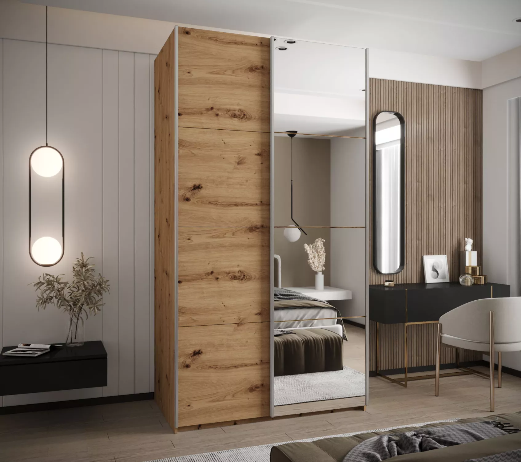 Dvoudveřová skříň SAMARA 3 - 130 cm, dub artisan / stříbrná