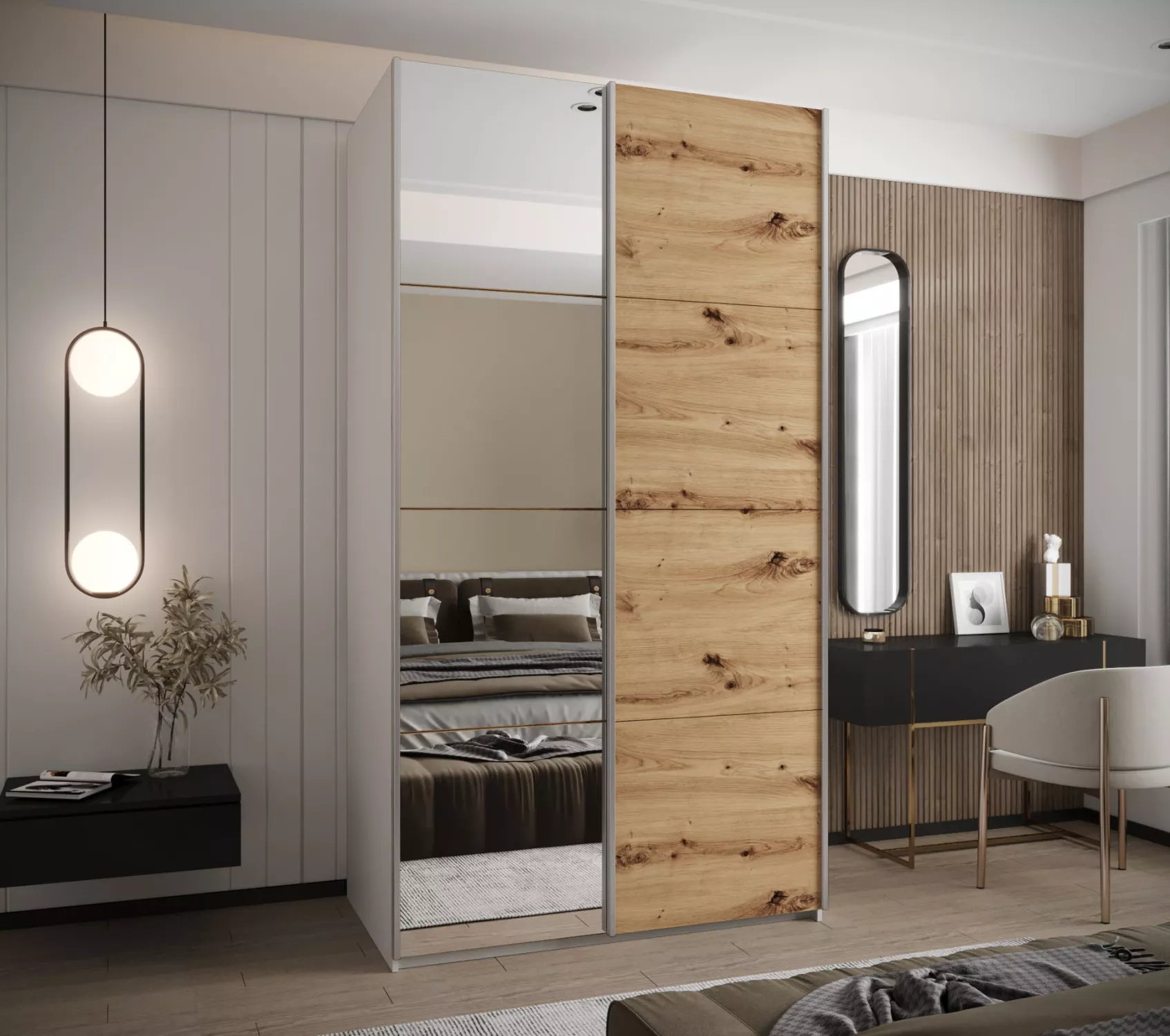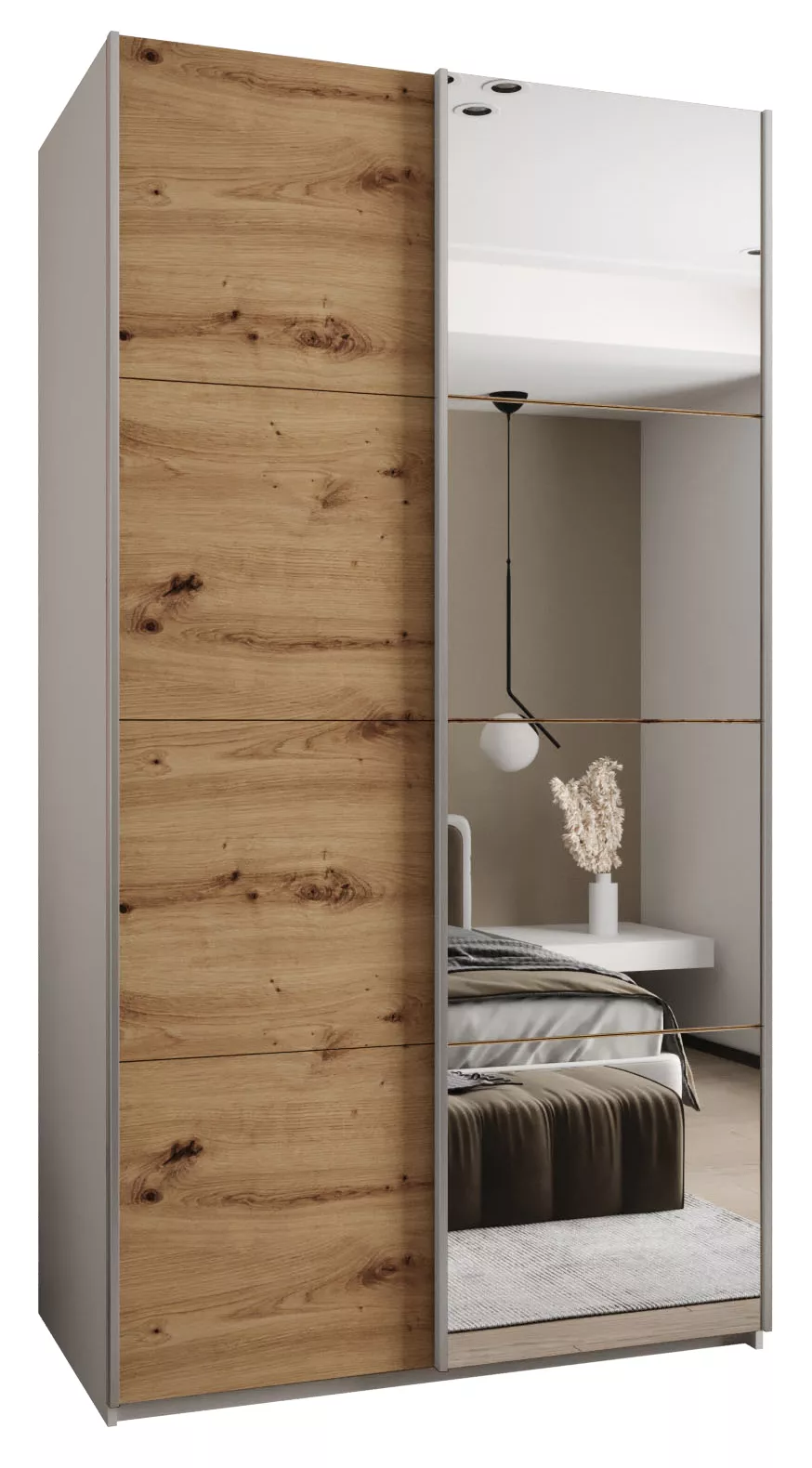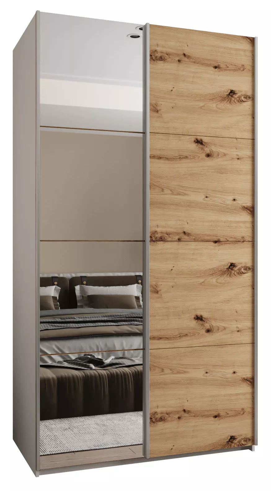 Dvoudveřová skříň SAMARA 3 - 140 cm, bílá / dub artisan / stříbrná