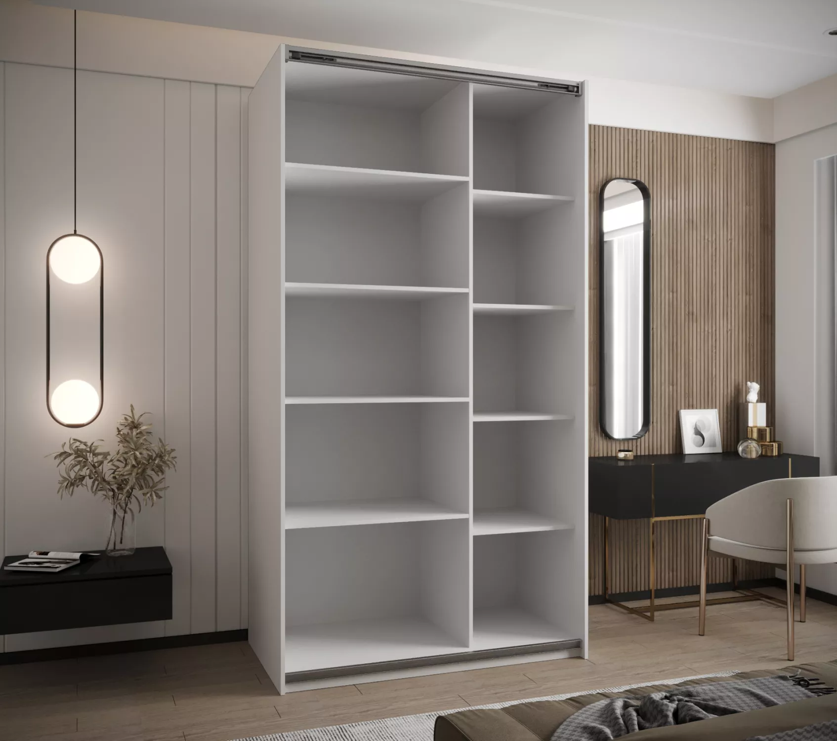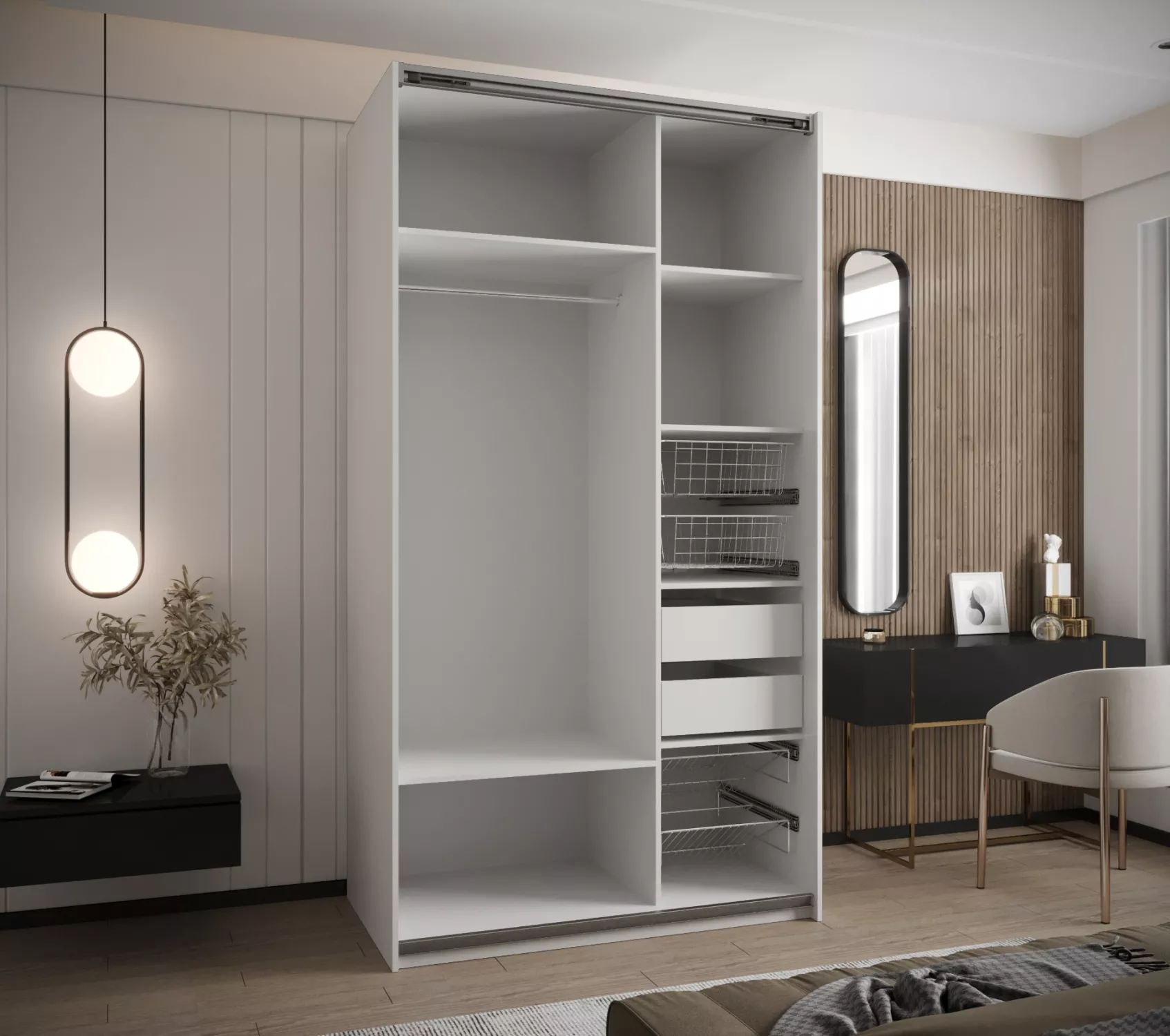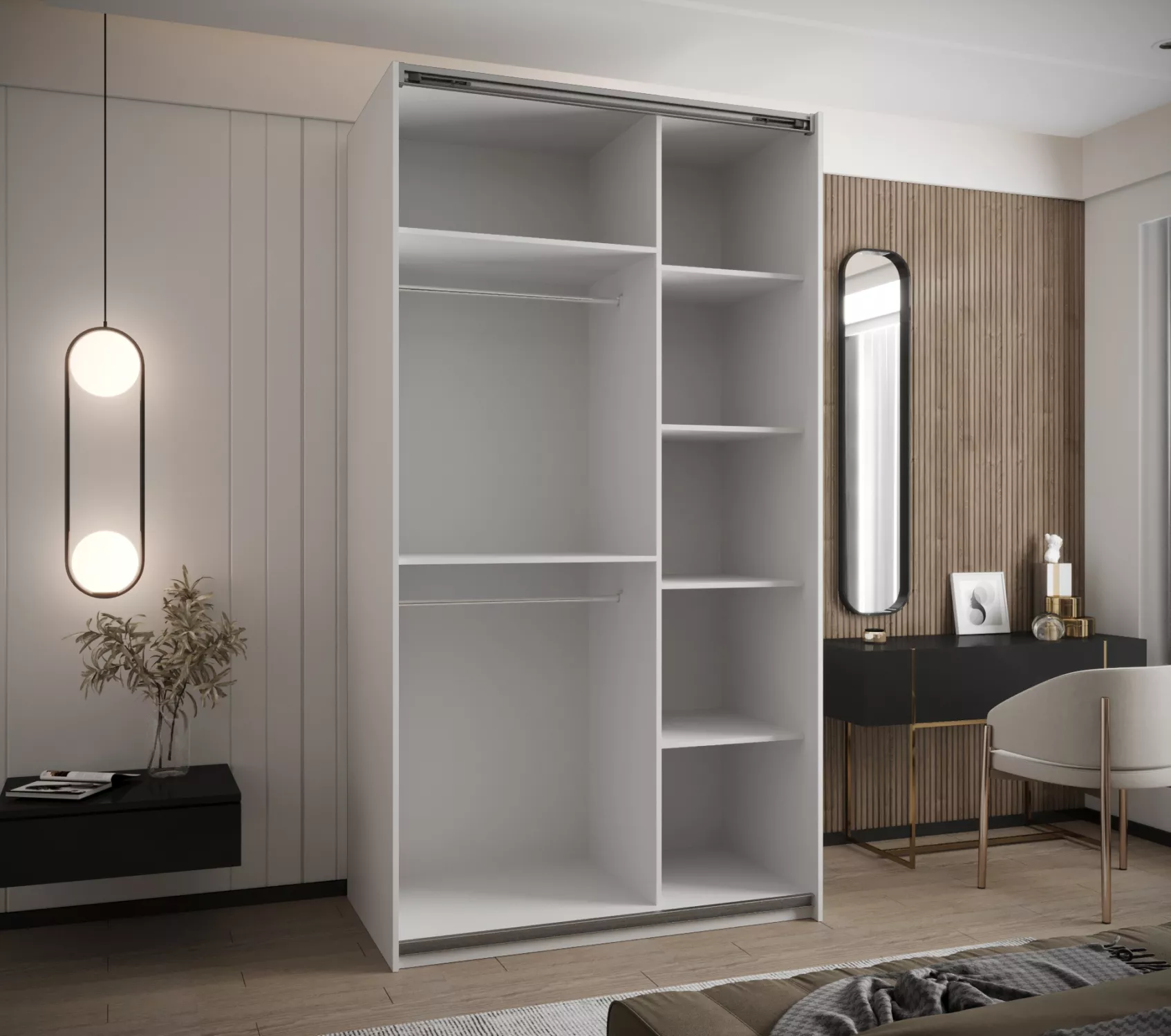 Dvoudveřová skříň SAMARA 3 - 140 představuje spojení elegance a funkcionality. Nabízí dostatek úložného prostoru v podobě policového systému a 2 šatních tyčí.
