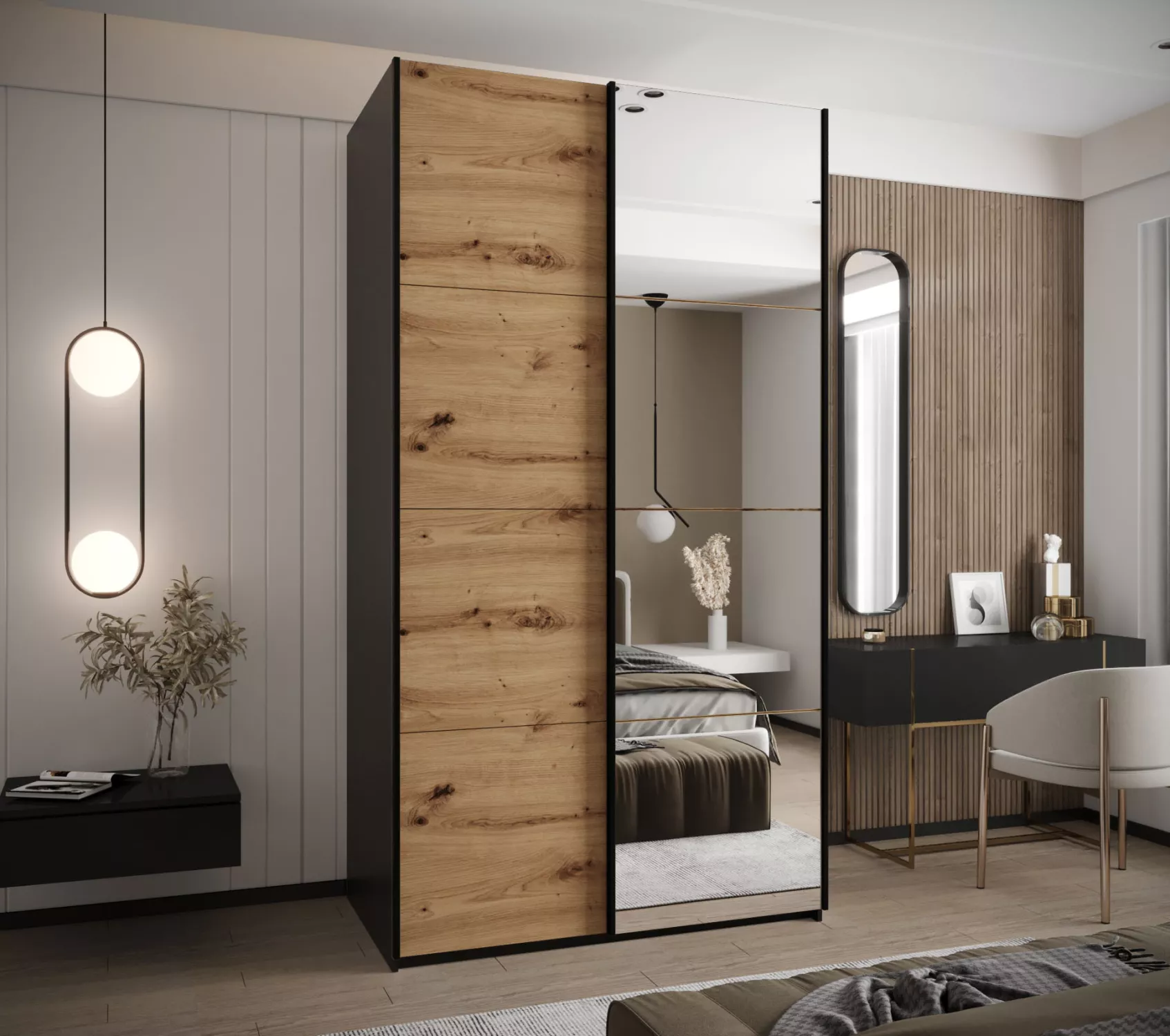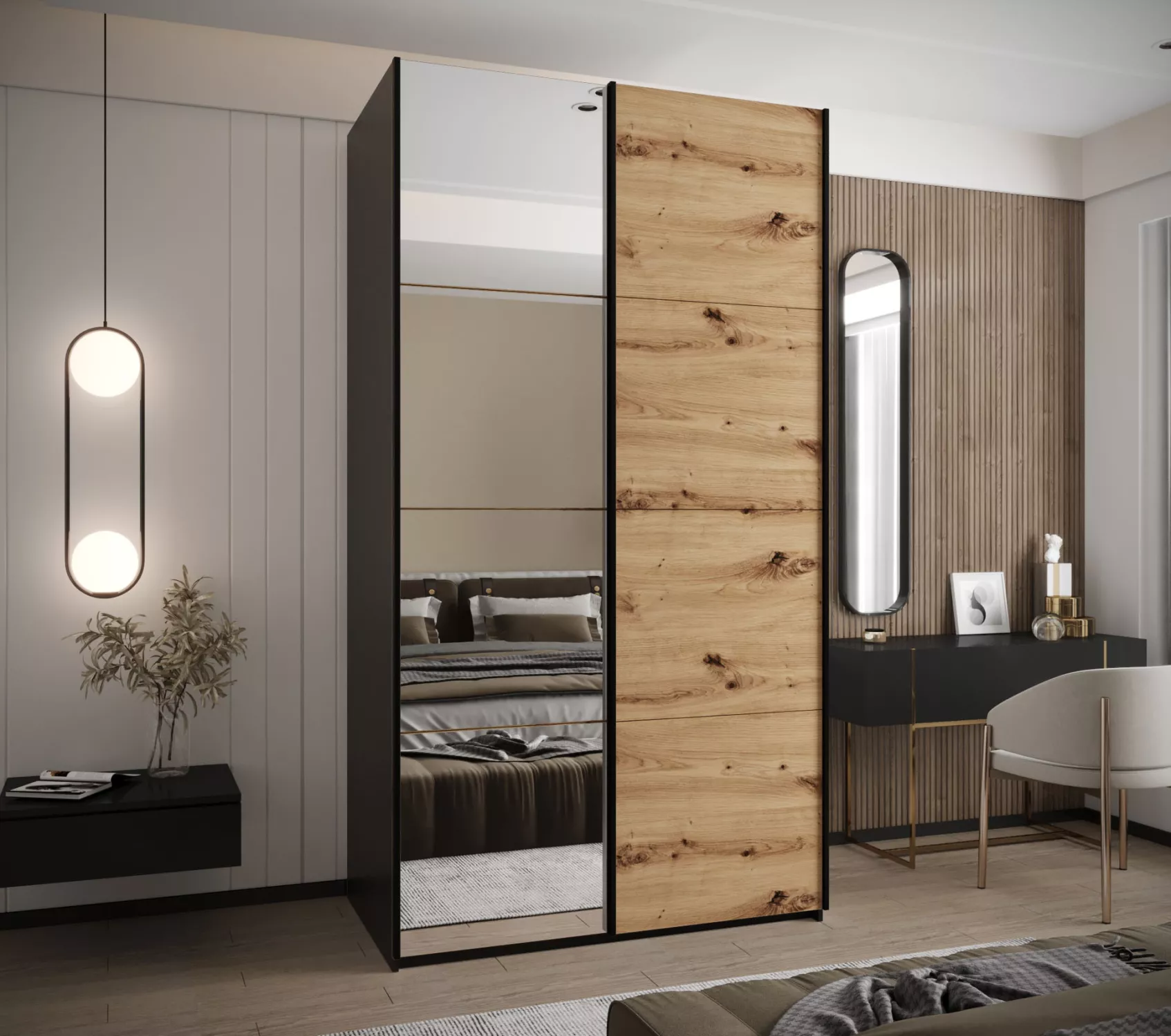 Dvoudveřová skříň SAMARA 3 - 140 cm, černá / dub artisan / černá