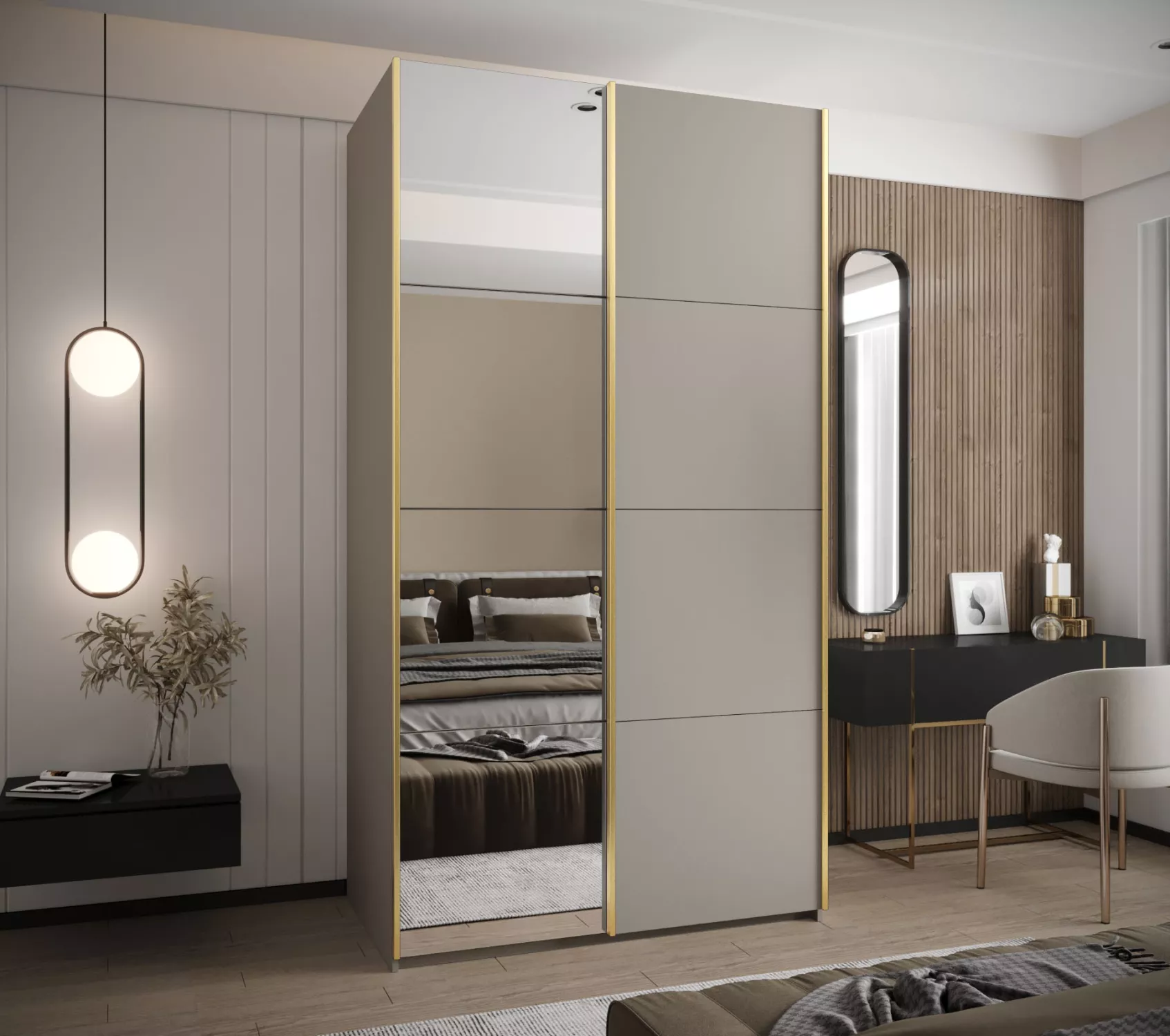 Dvoudveřová skříň SAMARA 3 - 140 cm, kašmír / zlatá