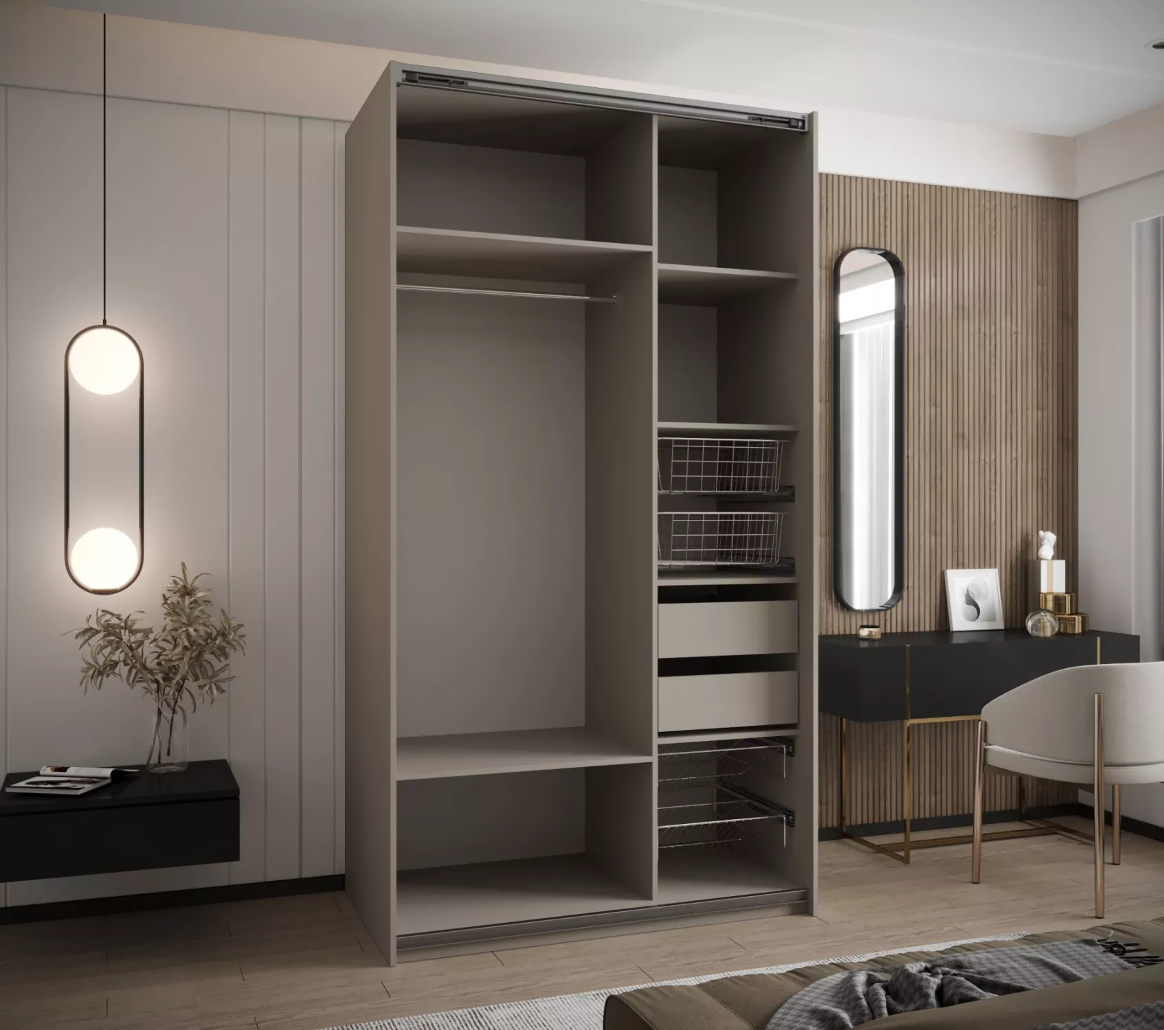 Dvoudveřová skříň SAMARA 3 - 140 představuje spojení elegance a funkcionality. Nabízí dostatek úložného prostoru v podobě policového systému a 2 šatních tyčí.