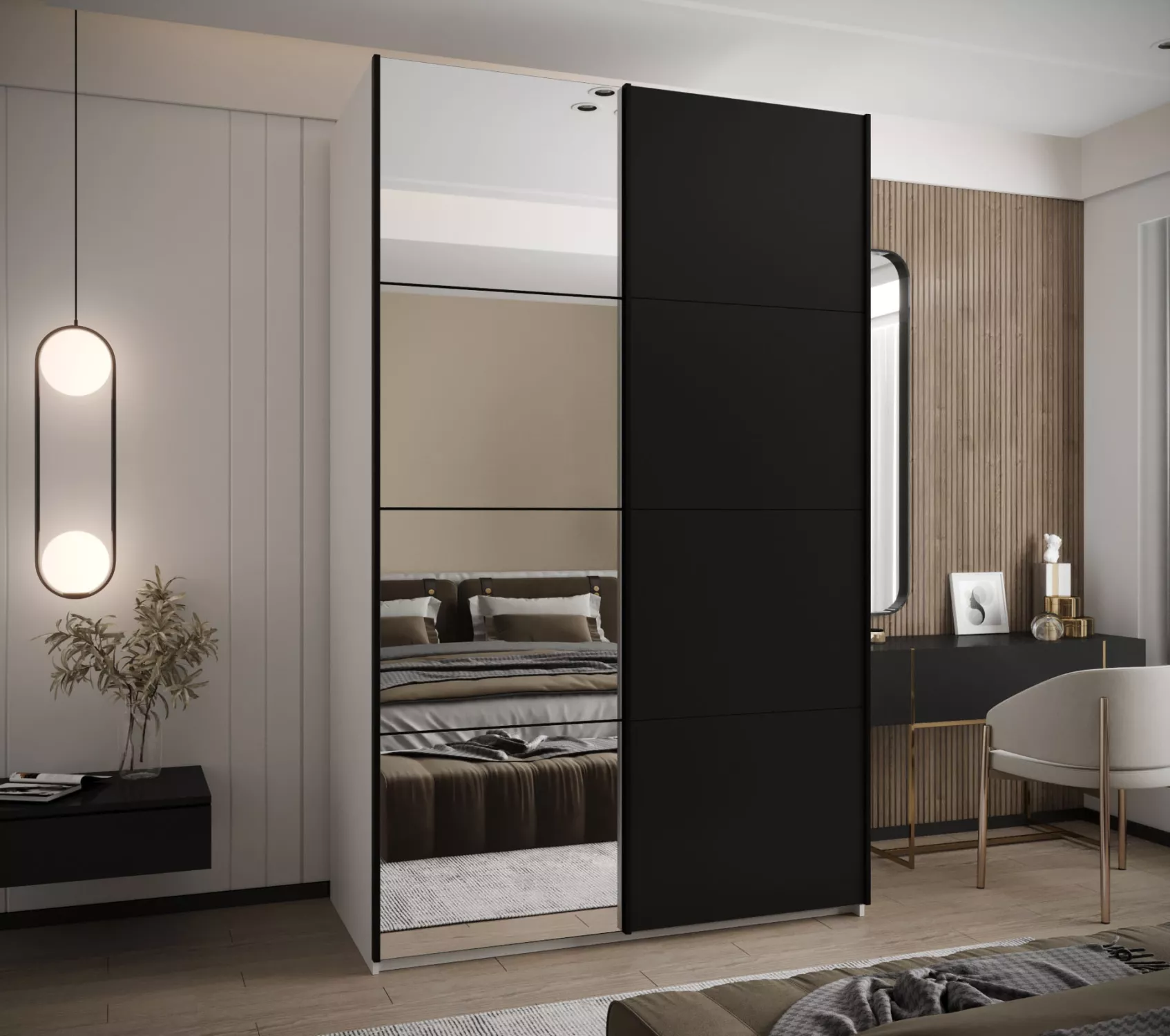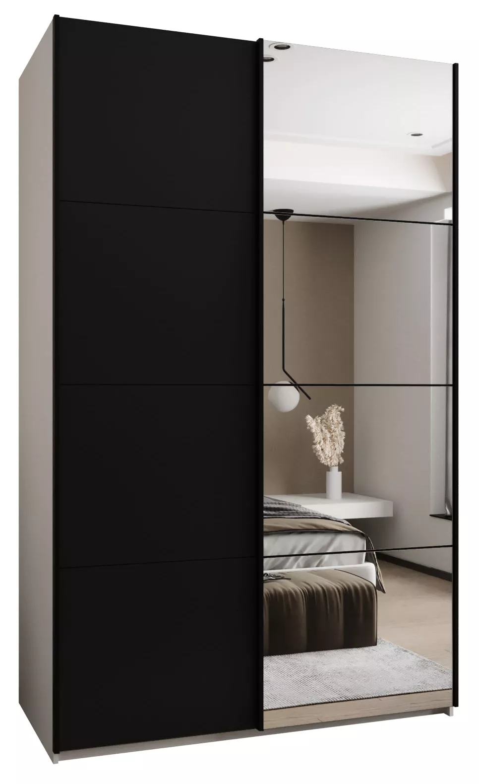 Dvoudveřová skříň SAMARA 3 - 150 cm, bílá / černá / černá