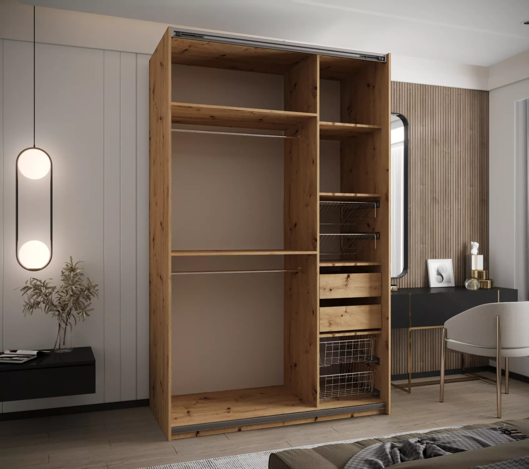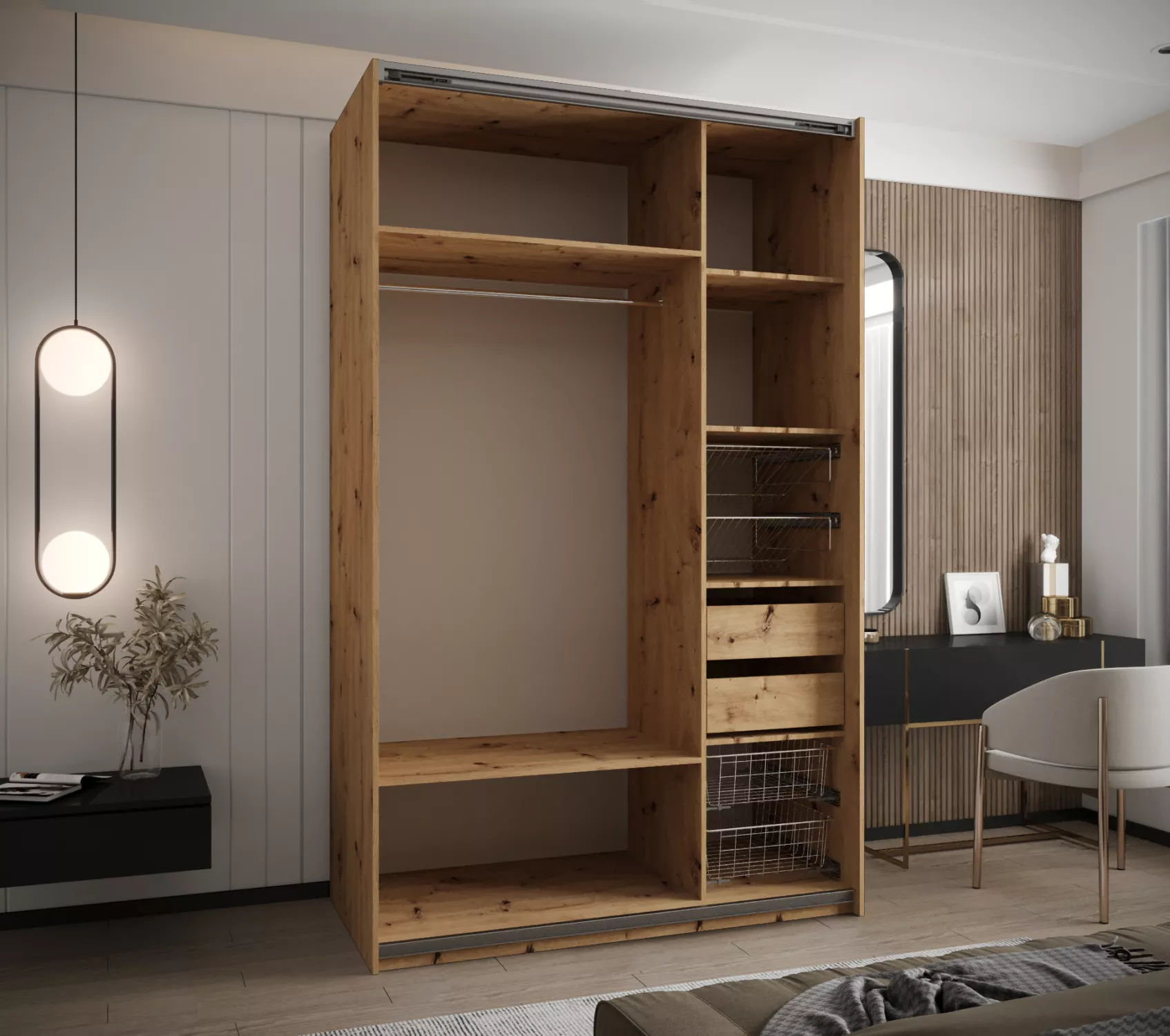 Dvoudveřová skříň SAMARA 3 - 150 představuje spojení elegance a funkcionality. Nabízí dostatek úložného prostoru v podobě policového systému a 2 šatních tyčí.