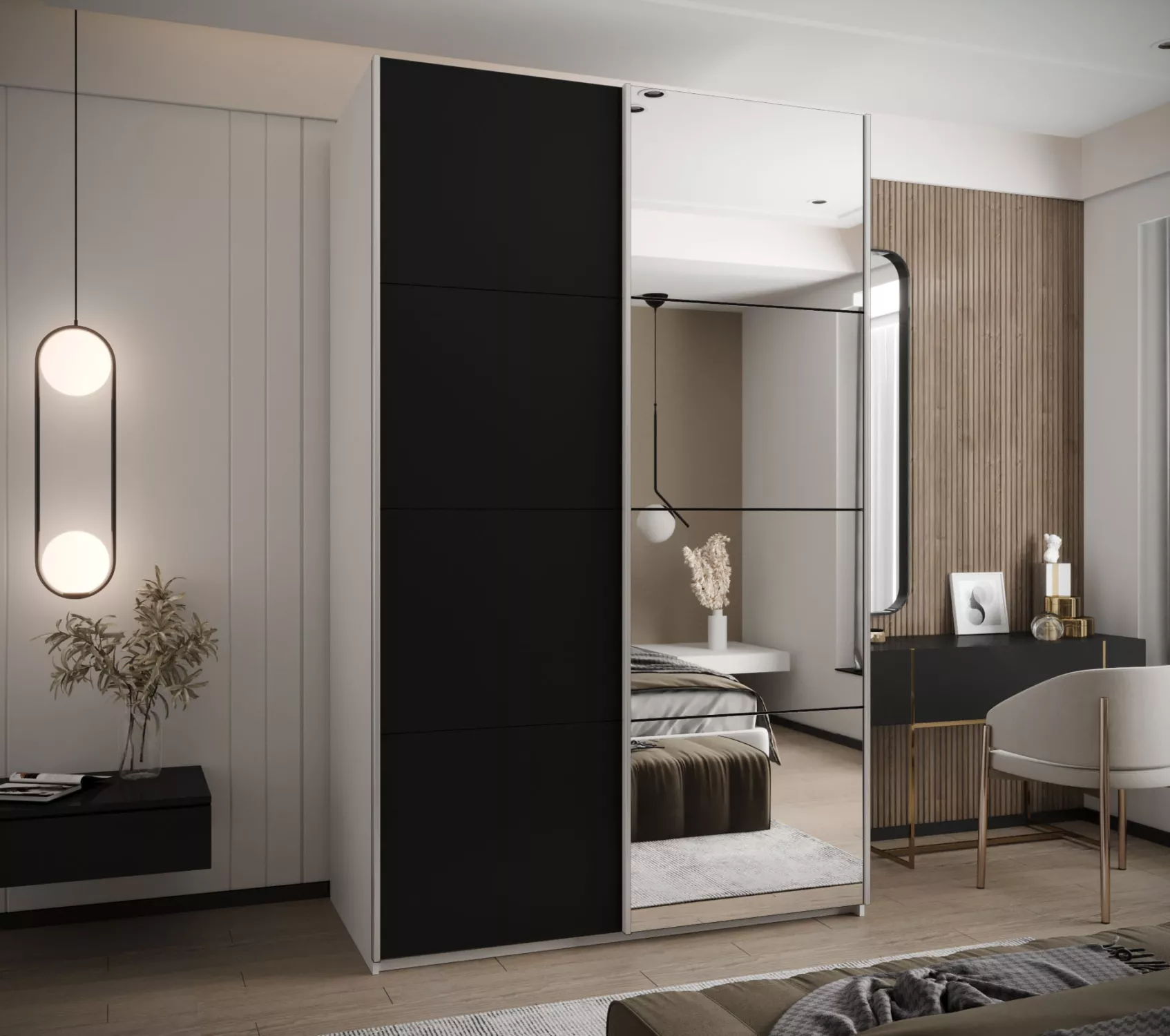 Dvoudveřová skříň SAMARA 3 - 160 cm, bílá / černá / černá