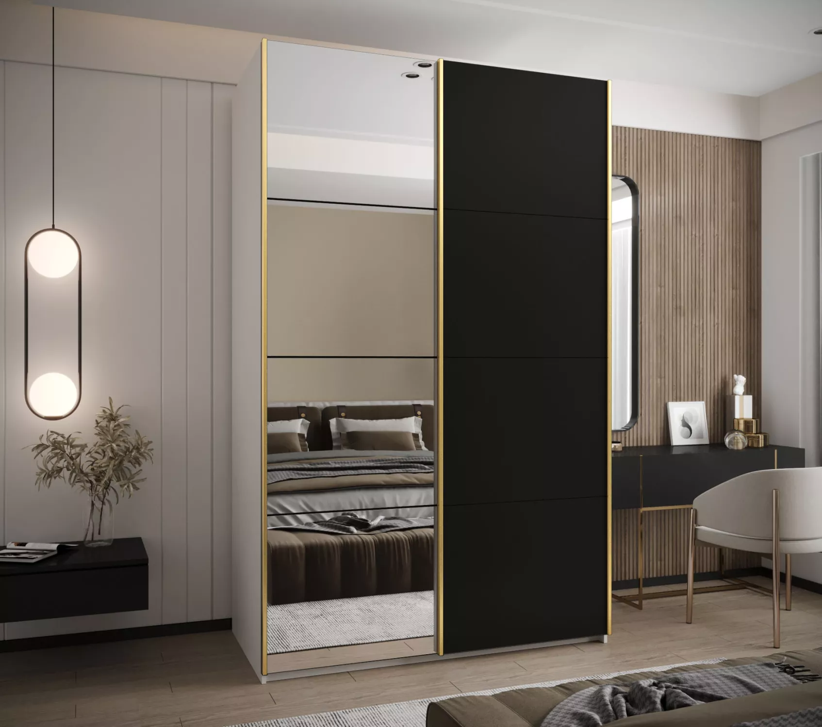 Dvoudveřová skříň SAMARA 3 - 160 cm, bílá / černá / zlatá