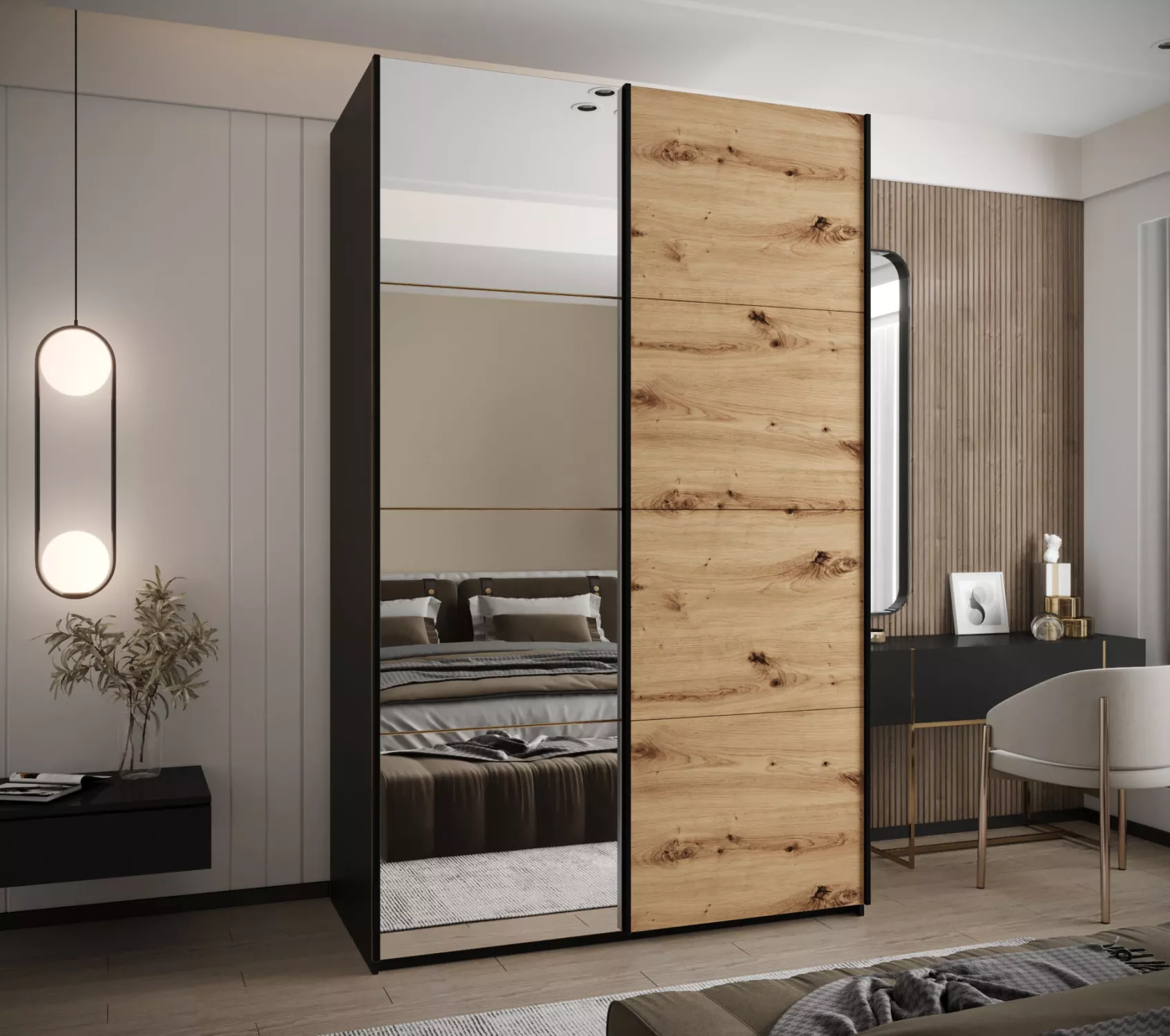Dvoudveřová skříň SAMARA 3 - 160 cm, černá / dub artisan / černá