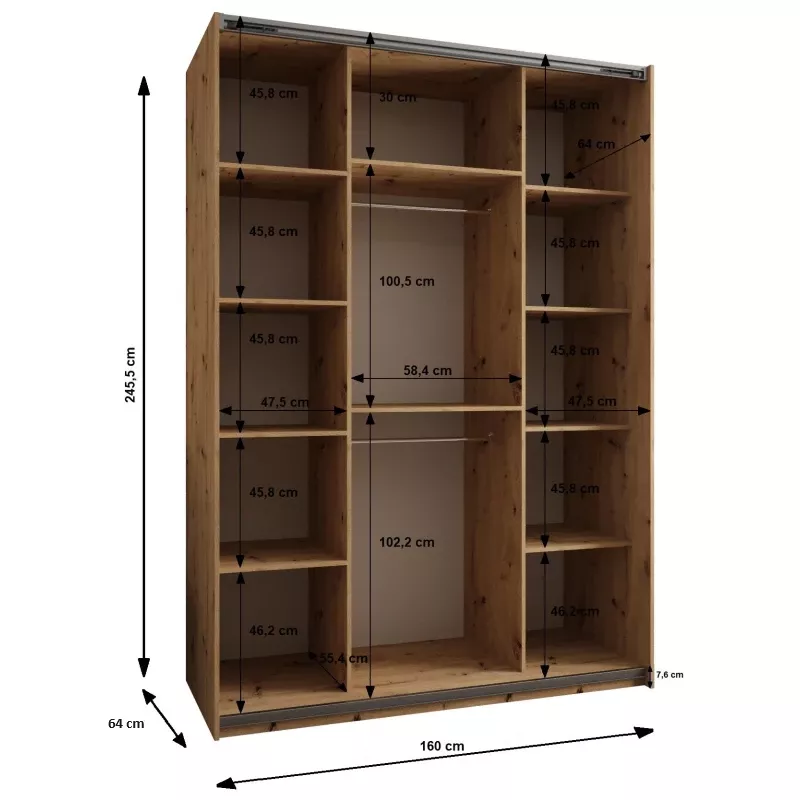 Dvoudveřová skříň SAMARA 3 - 160 cm, dub artisan / černá