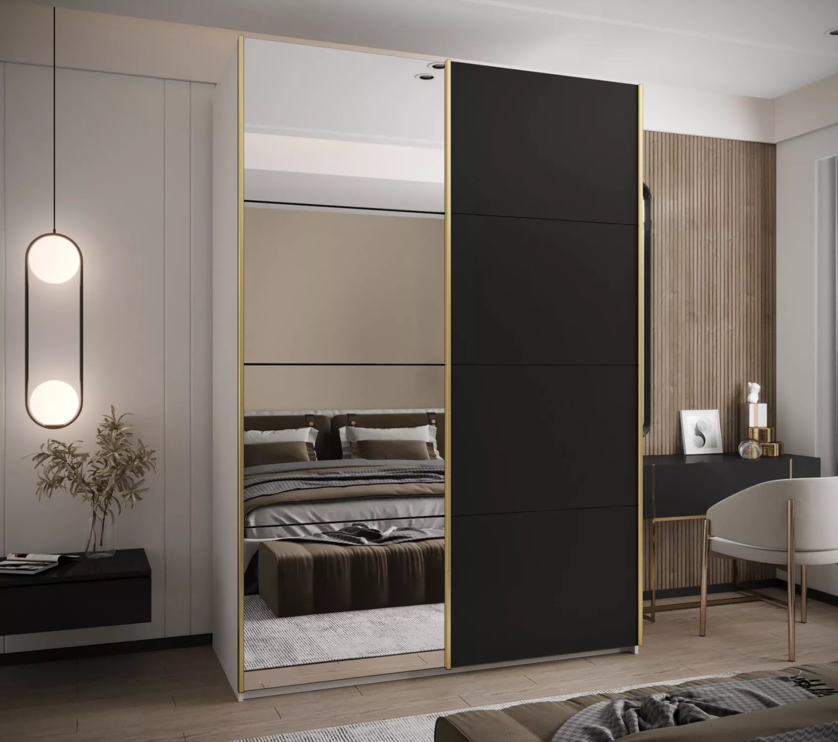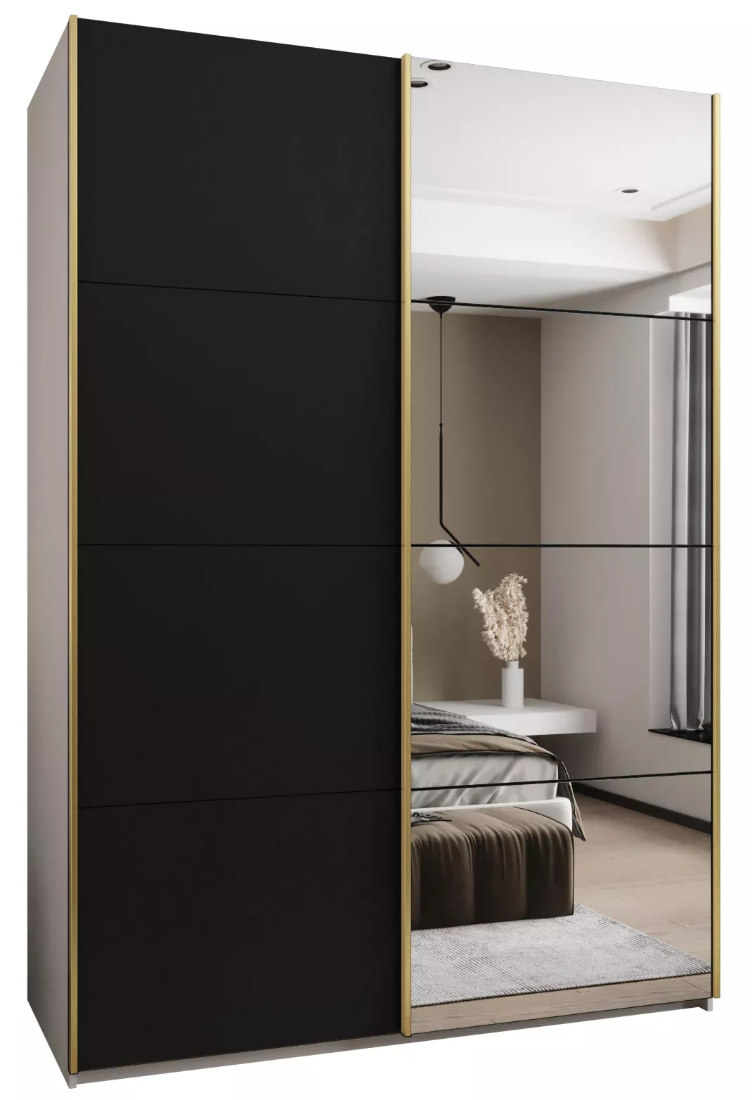 Dvoudveřová skříň SAMARA 3 - 170 cm, bílá / černá / zlatá