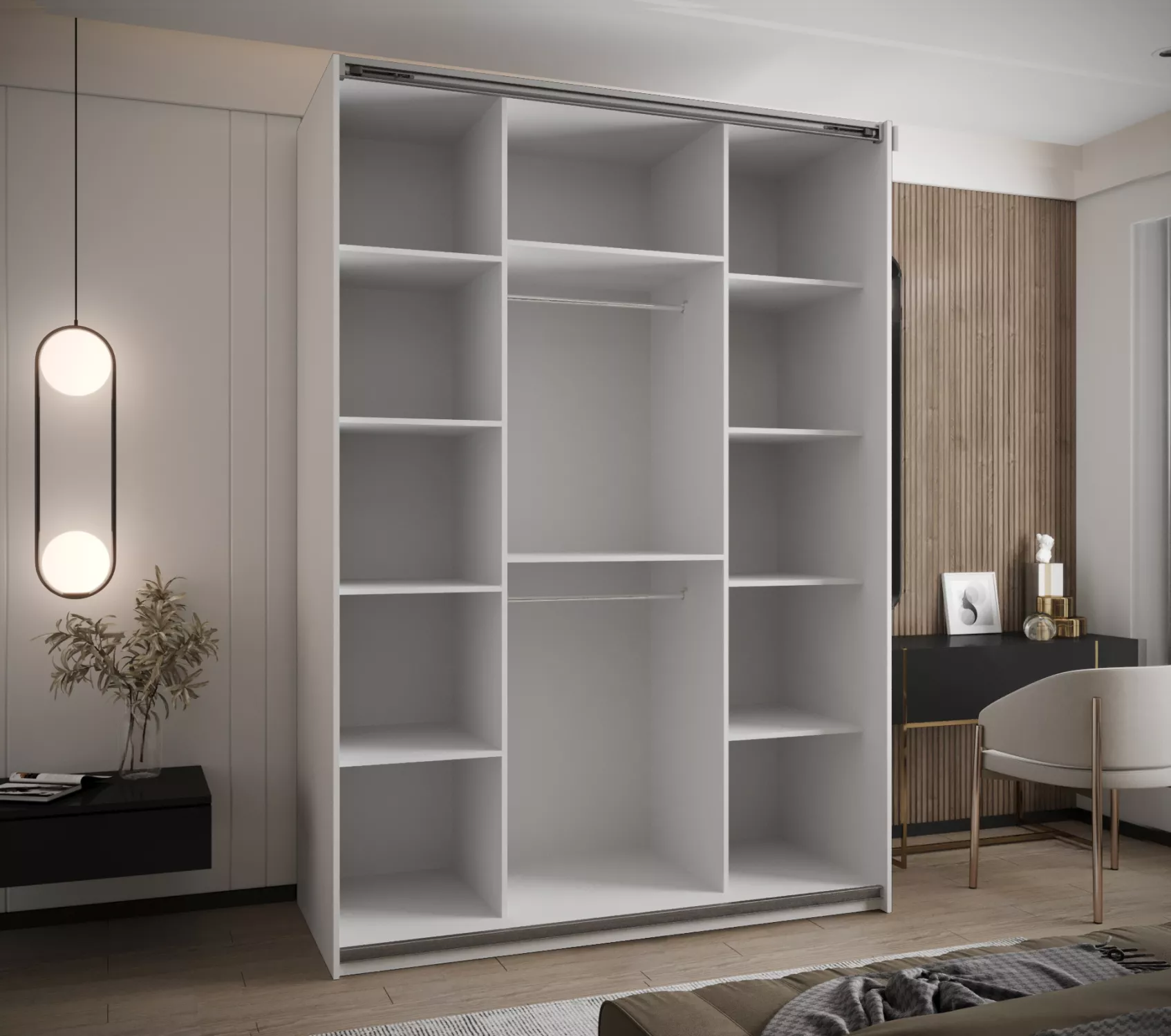 Dvoudveřová skříň SAMARA 3 představuje spojení elegance a funkcionality. Nabízí dostatek úložného prostoru v podobě policového systému a 2 šatních tyčí.