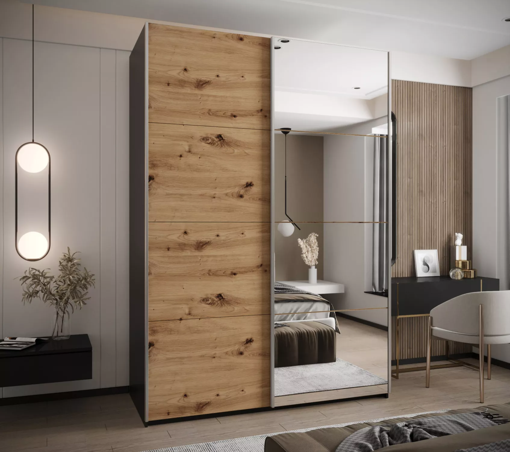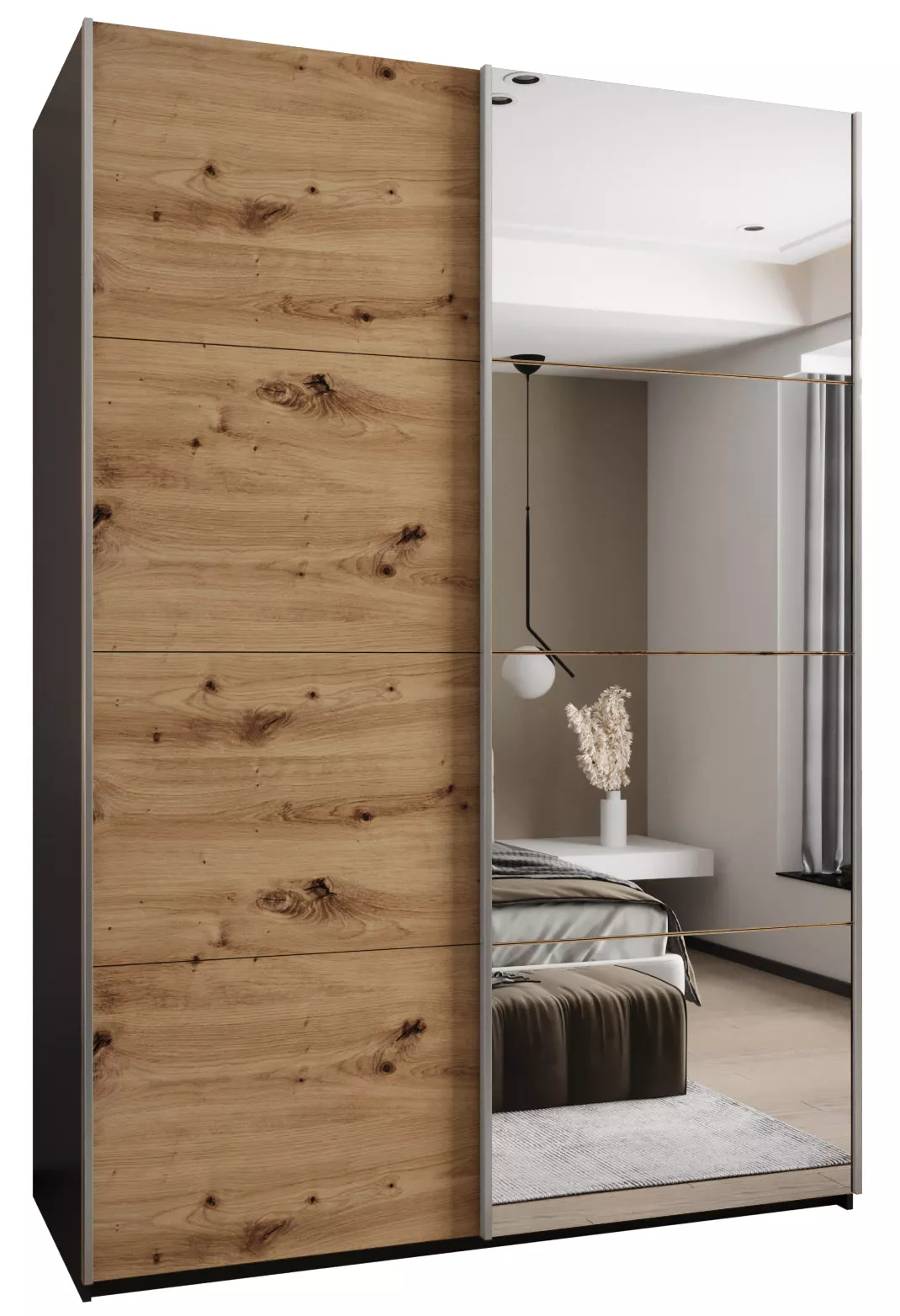 Dvoudveřová skříň SAMARA 3 představuje spojení elegance a funkcionality. Nabízí dostatek úložného prostoru v podobě policového systému a 2 šatních tyčí.