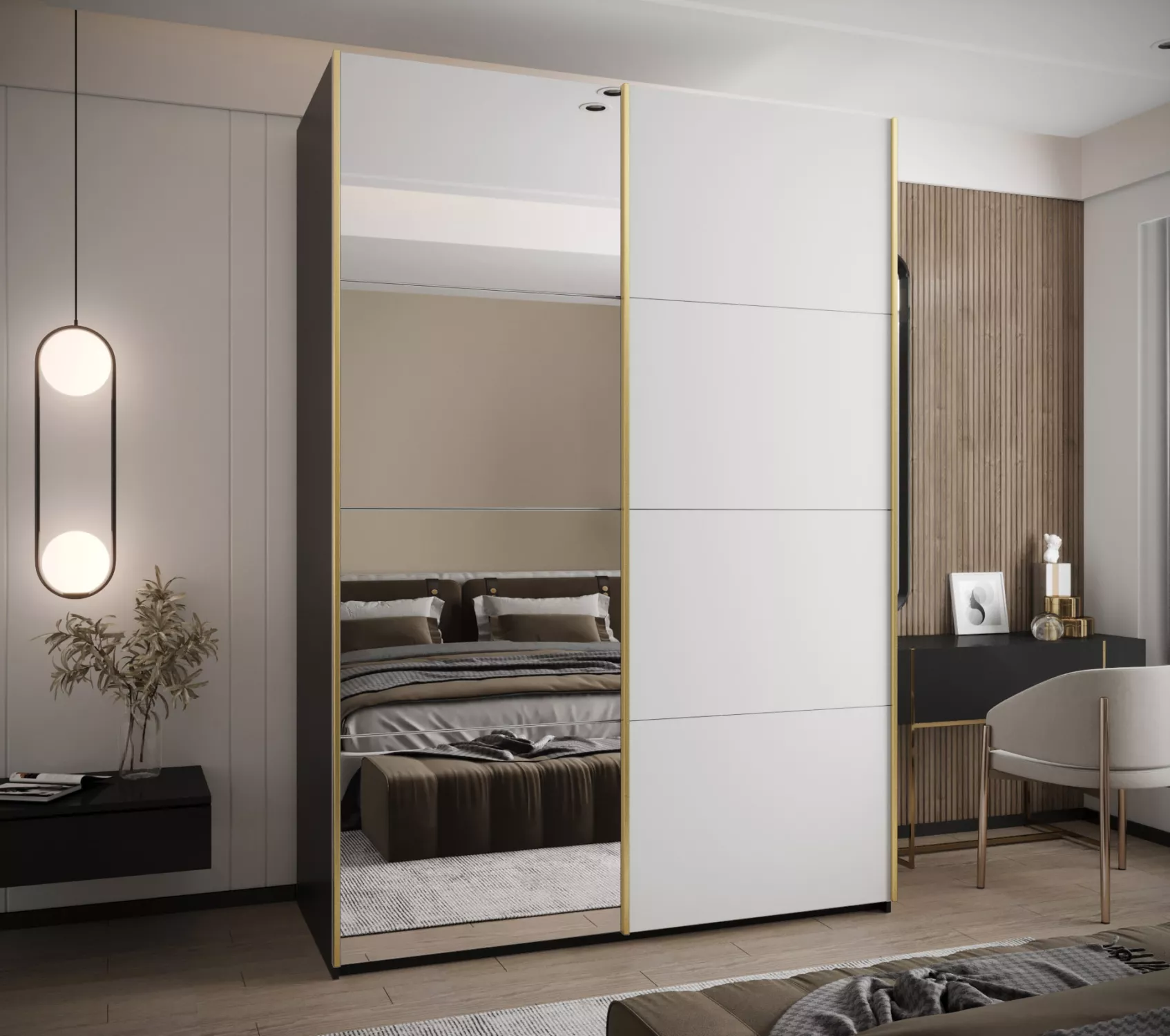 Dvoudveřová skříň SAMARA 3 - 180 cm, černá / bílá / zlatá