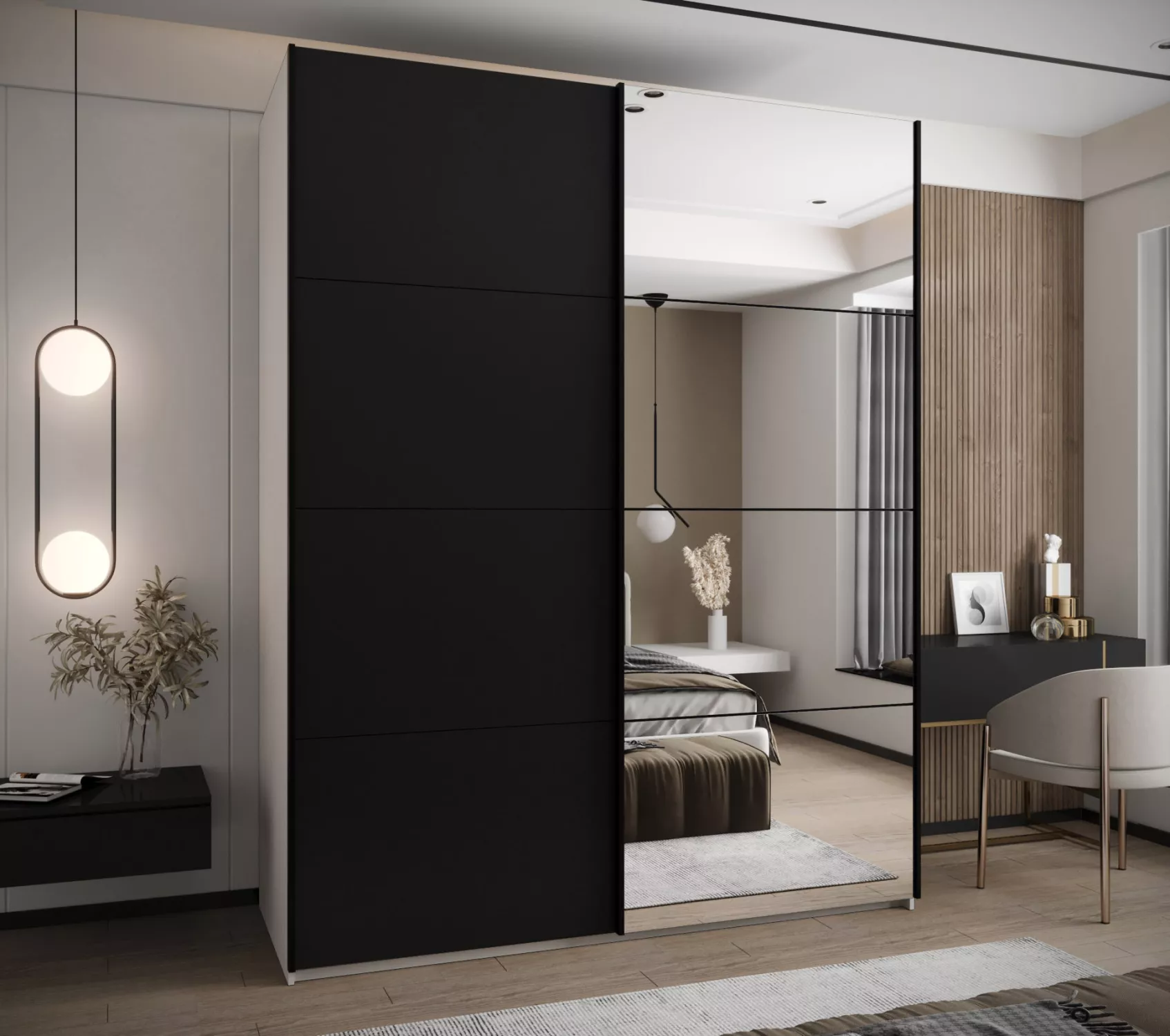 Dvoudveřová skříň SAMARA 3 - 190 cm, bílá / černá / černá
