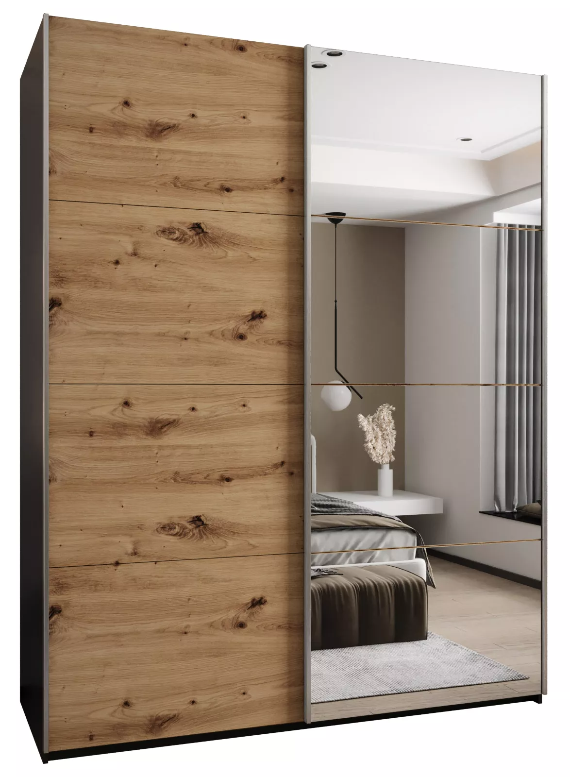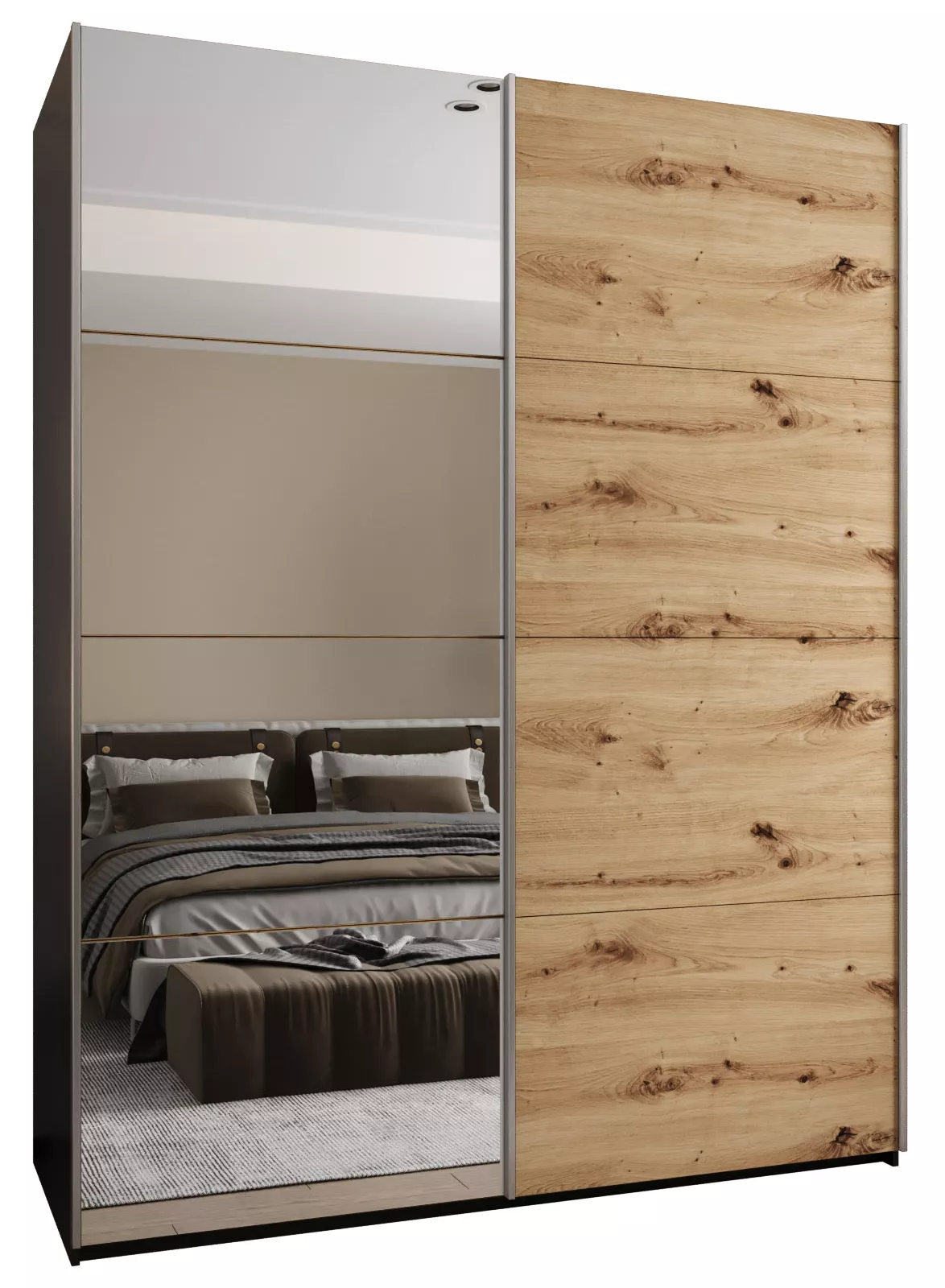 Dvoudveřová skříň SAMARA 3 - 190 cm, černá / dub artisan / stříbrná