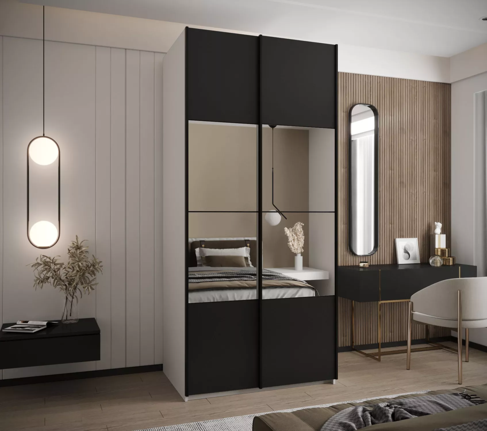 Dvoudveřová skříň SAMARA 4 - 110 cm, bílá / černá / černá