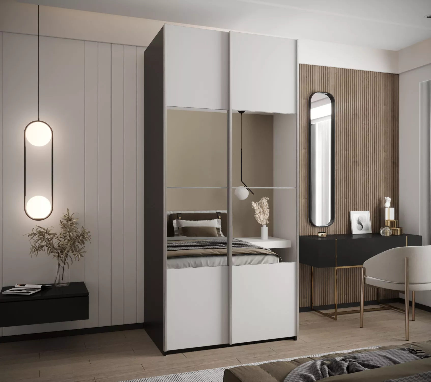 Dvoudveřová skříň SAMARA 4 představuje spojení elegance a funkcionality. Nabízí dostatek úložného prostoru v podobě policového systému a 2 šatních tyčí.