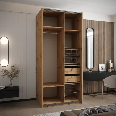 Dvoudveřová skříň SAMARA 4 představuje spojení elegance a funkcionality. Nabízí dostatek úložného prostoru v podobě policového systému a 2 šatních tyčí.