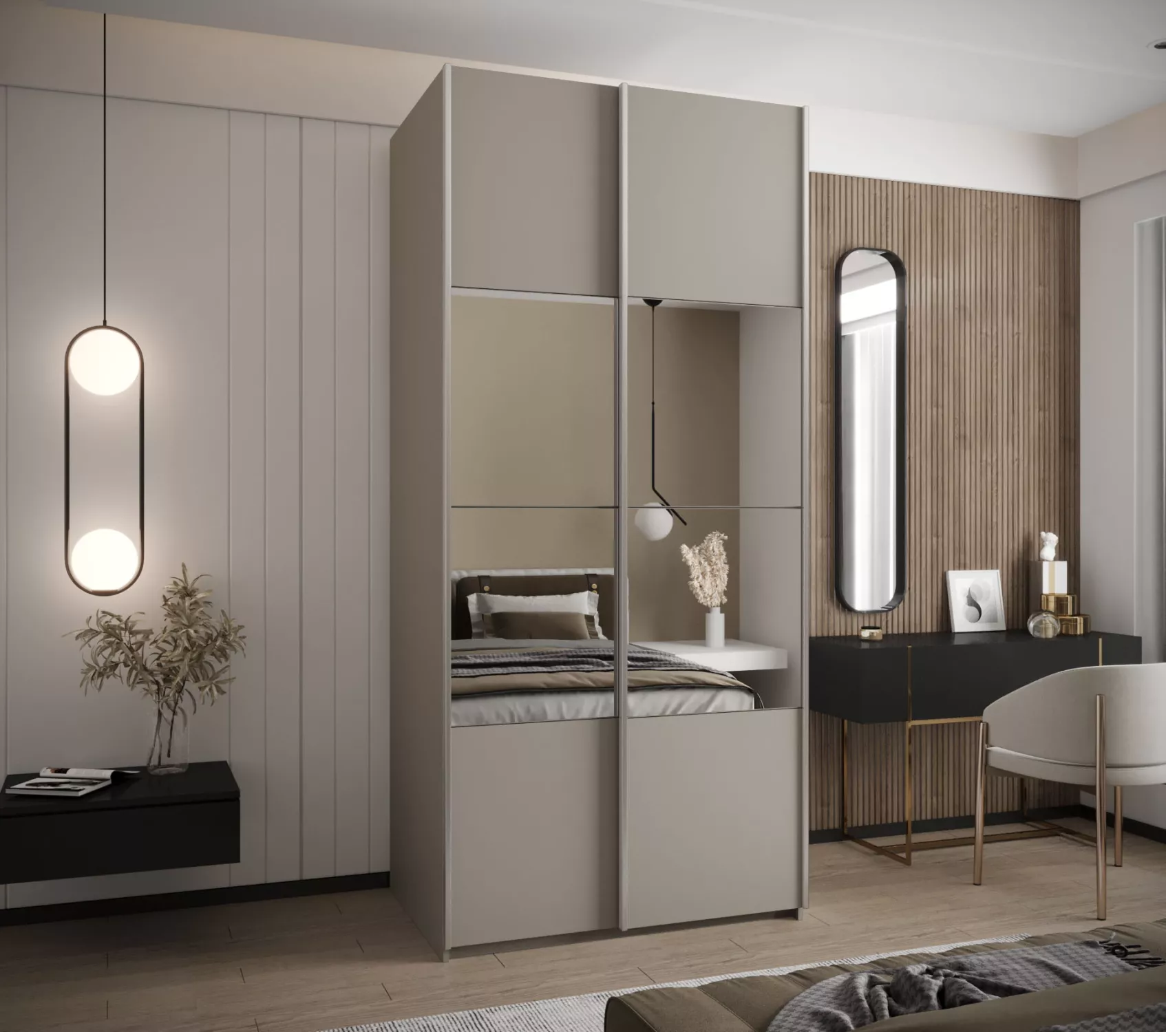 Dvoudveřová skříň SAMARA 4 představuje spojení elegance a funkcionality. Nabízí dostatek úložného prostoru v podobě policového systému a 2 šatních tyčí.