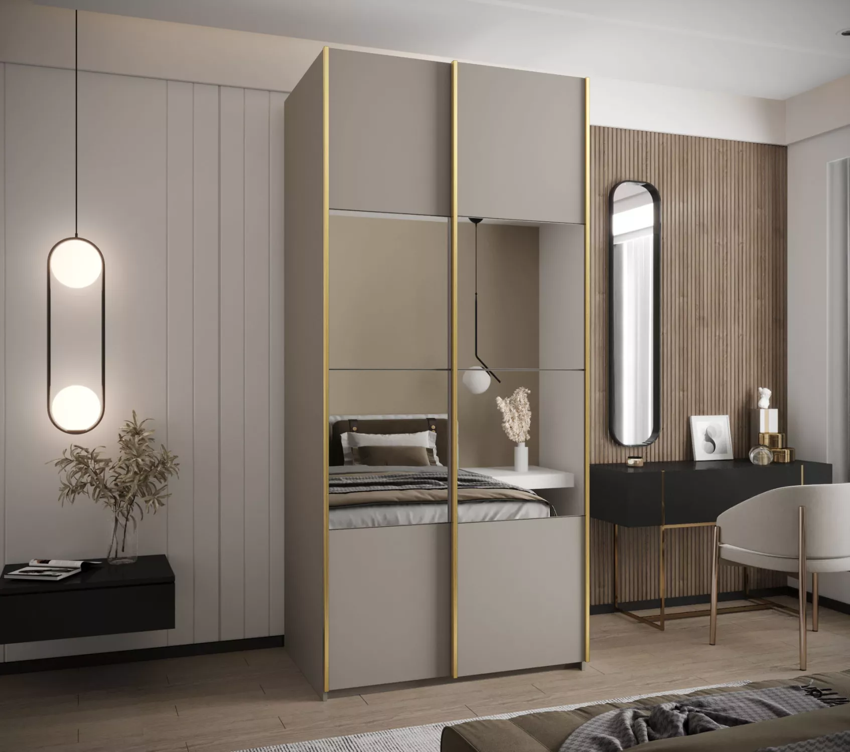 Dvoudveřová skříň SAMARA 4 - 110 cm, kašmír / zlatá