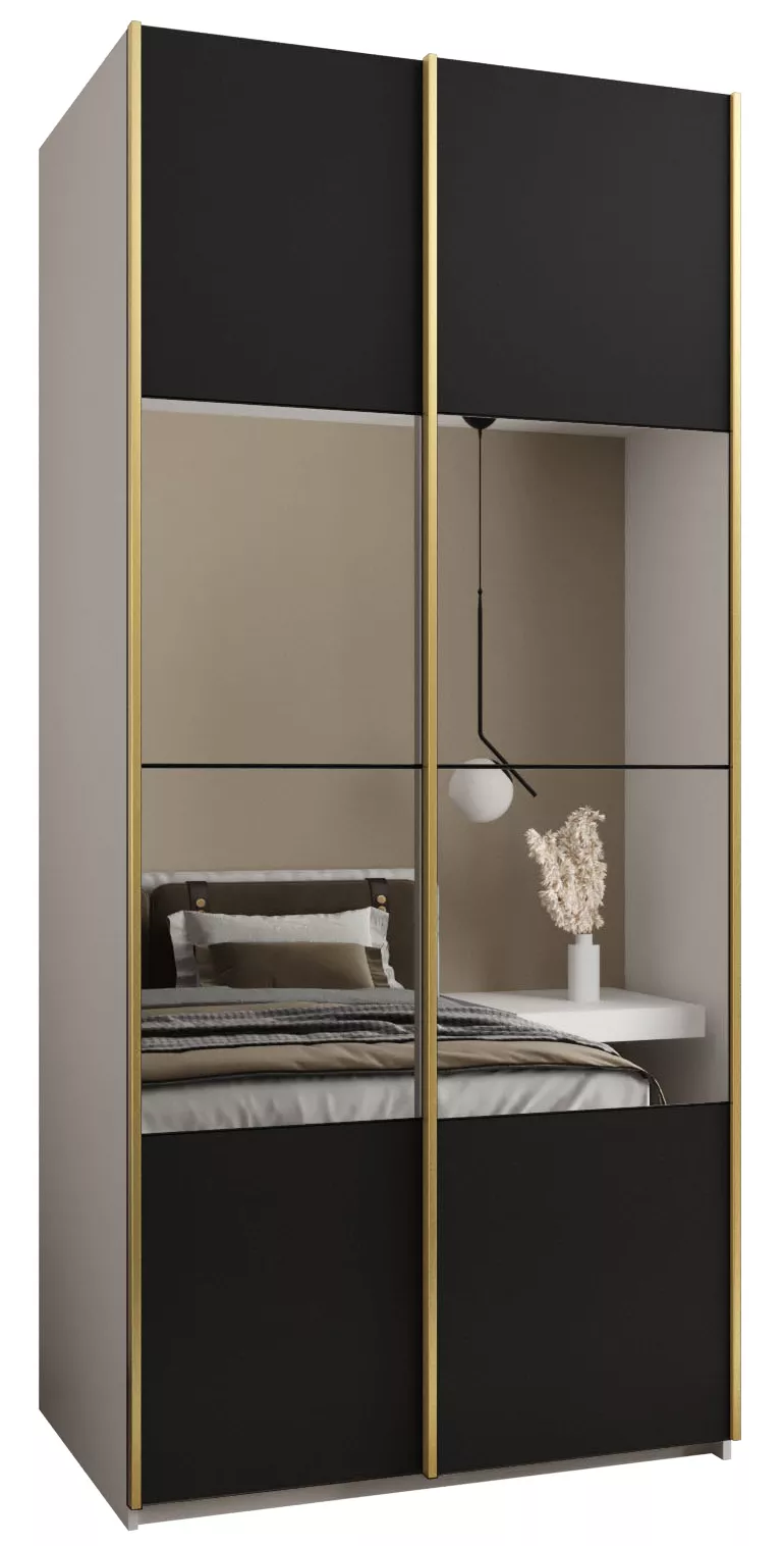 Dvoudveřová skříň SAMARA 4 - 120 cm, bílá / černá / zlatá