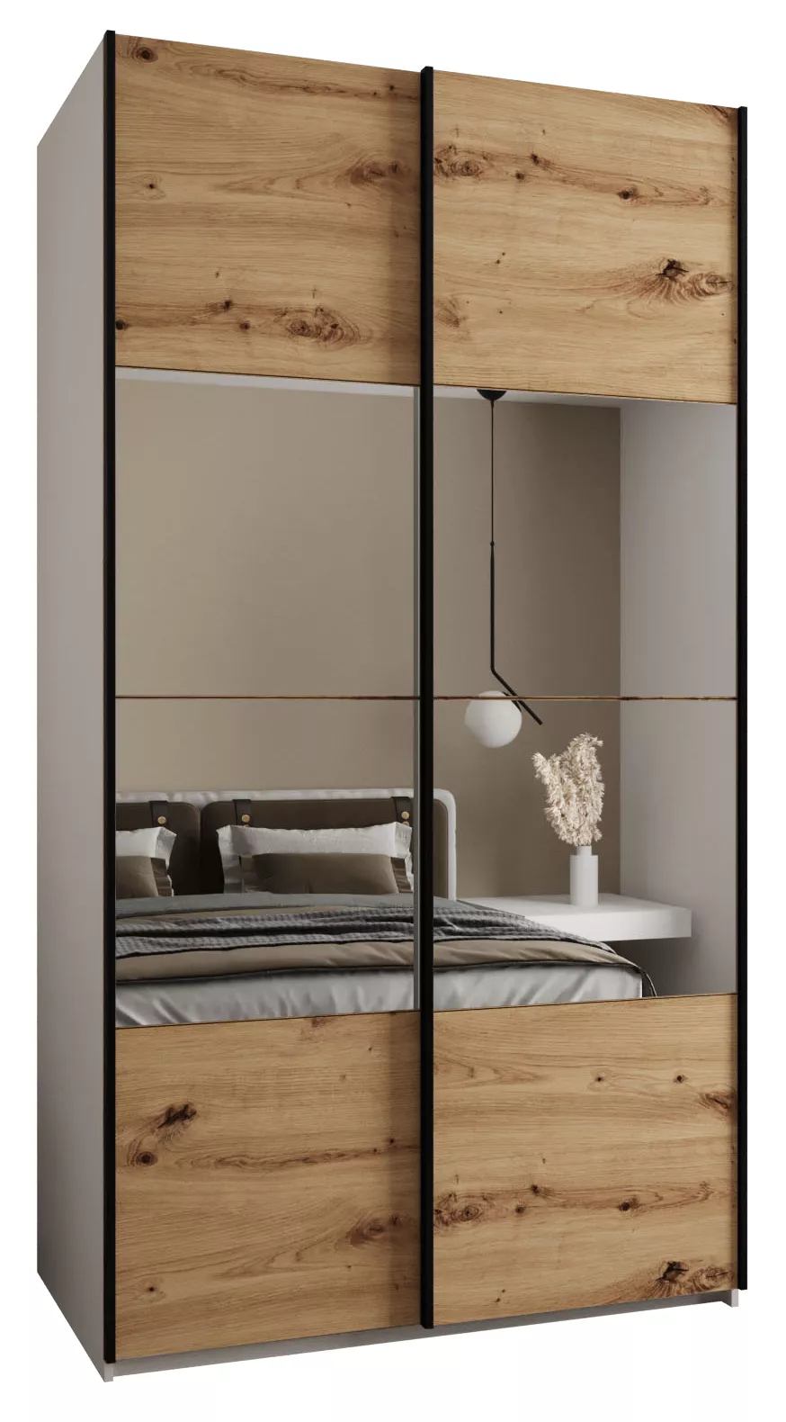 Dvoudveřová skříň SAMARA 4 - 130 cm, bílá / dub artisan / černá