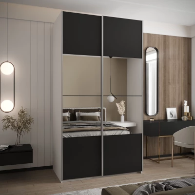 Dvoudveřová skříň SAMARA 4 - 130 cm, bílá / černá / stříbrná