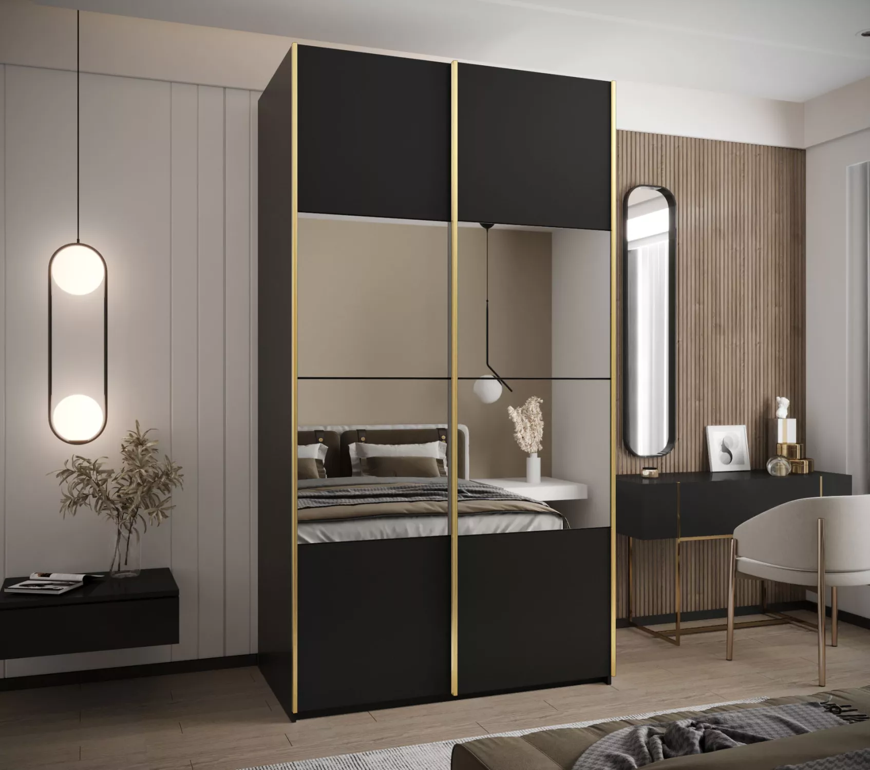 Dvoudveřová skříň SAMARA 4 - 130 cm, černá / zlatá