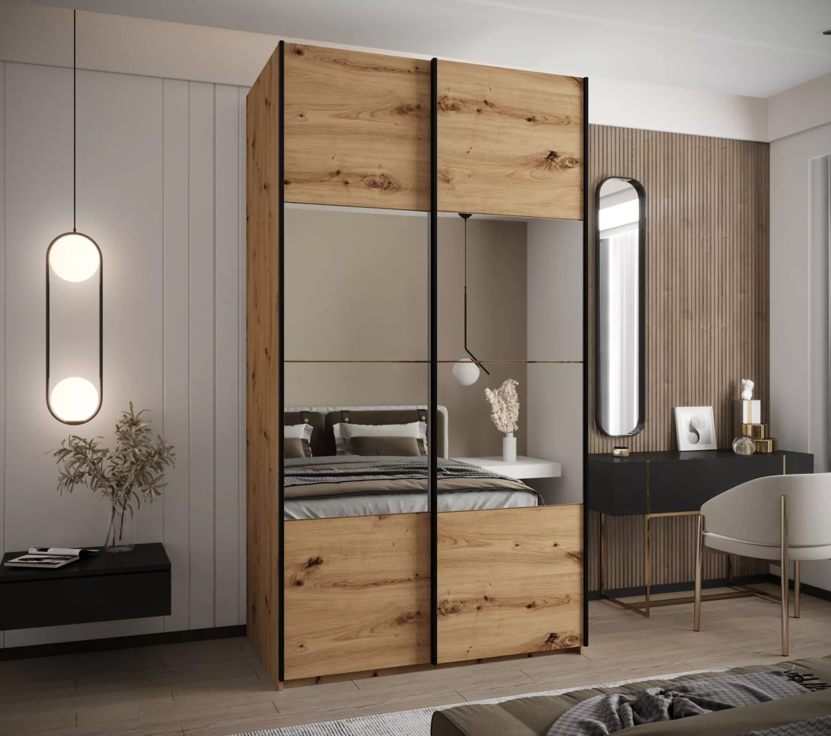 Dvoudveřová skříň SAMARA 4 - 130 cm, dub artisan / černá
